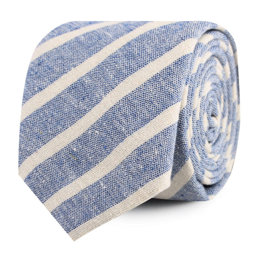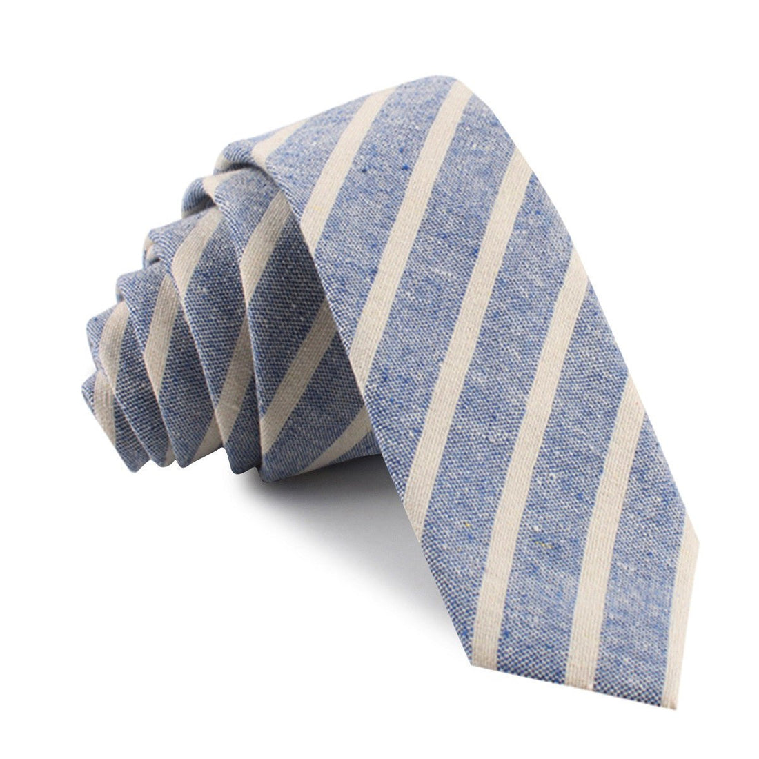When the Brothers at OTAA create nautical designs, they like to immerse themselves in oceanic environments. The Blue Bodrum Linen Chalk Stripe Skinny Tie was designed in the middle of the Atlantic in a haphazard canoe. "Perfect," the brothers professed as they painted their final brushstroke. The canoe capsized and they were forced to ride dolphins to shore- but that's ok because this Blue Bodrum Linen Chalk Stripe Thin Tie is a knock-out!