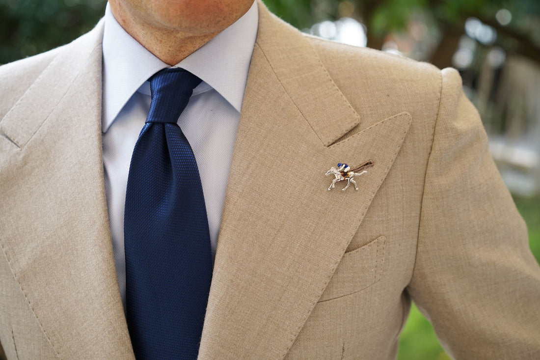 Add a sophisticated staple to your race day styles with OTAA’s Blue Jockey Racehorse Lapel Pin. It’s off to the races with this elegant pin, the perfect summary of what has been dubbed “the greatest two minutes in sports". This debonair Blue Jockey Racehorse Lapel Pin was designed to put a winning edge in your stride at this year’s races.