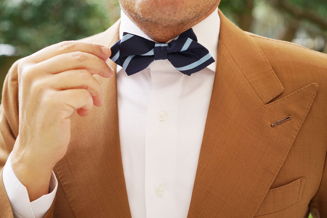 Every distinguished gentleman should own at least one diamond pre-tied bowtie; and this Blue Pencil Stripe Diamond Bowtie is a faultless contender. Sewn by hand and tailored with finesse, this design emanates a high-quality appearance. The double-toned blue palette is complemented by an eye-catching diagonal pattern to give you a confident asset for the boardroom. Designed exclusively by the Brothers at OTAA.