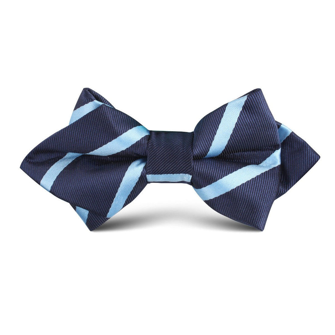 Every distinguished little man should own at least one kids bow tie; and this Blue Pencil Stripe Boys Diamond Bow Tie is a faultless contender. Sewn by hand and tailored with finesse, this design emanates a high-quality appearance. The double-toned blue palette is complemented by an eye-catching diagonal pattern to give your child a stand-out staple for formal events. Designed exclusively by the Brothers at OTAA.