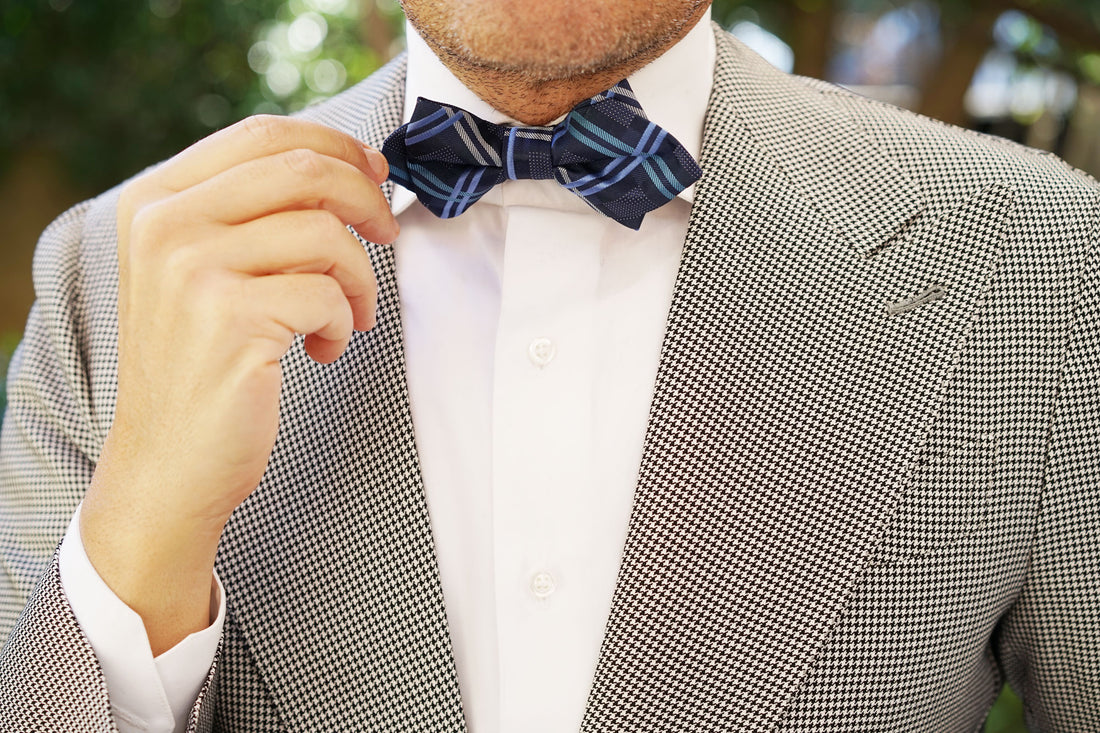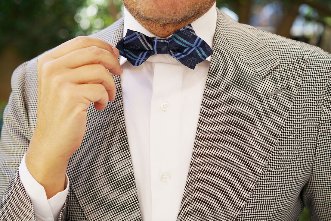 Indulge your wardrobe with perspectives of blue with OTAA's Blue X Diamond Bow Tie. Engagingly designed with a detailed "X" pattern, the Blue X Diamond Bow Tie makes a statement of intricate refinement. The sharp angular cut of this diamond bow tie will amp up your suits with an inquisitive detail. Complemented by navy, white and light blue accents, this pre-tied diamond bowtie is a masterclass of the powerful elegance blue creates. Wear it for a versatile accompaniment to boardroom meetings and formal engagements alike. Designed exclusively by the Brothers at OTAA.