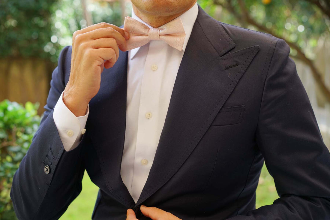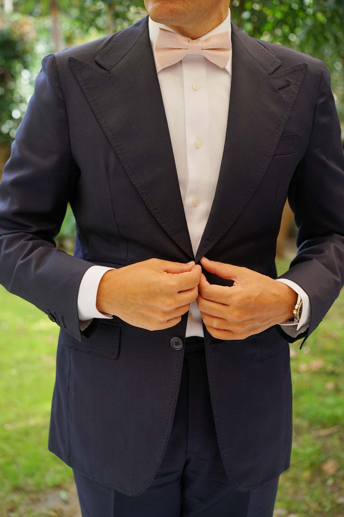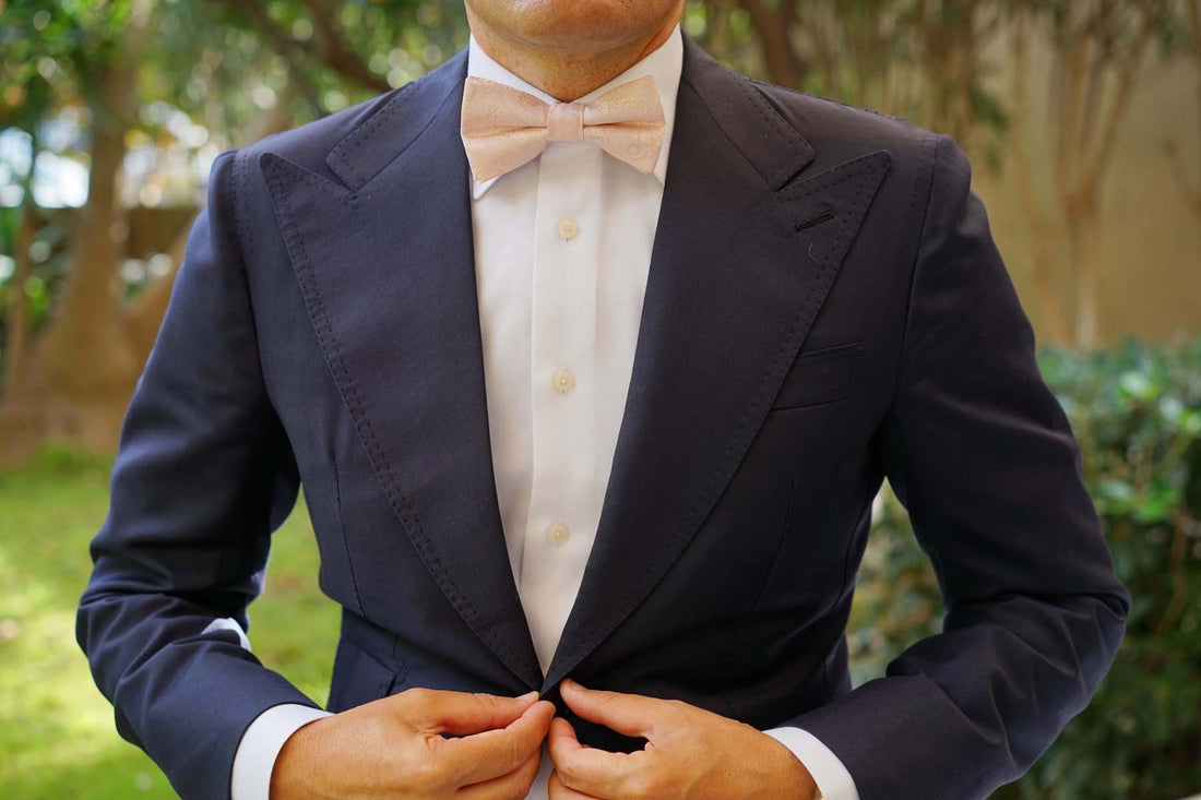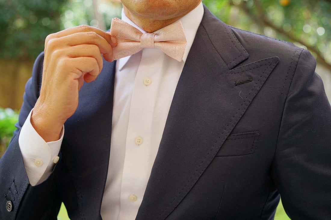 OTAA’s Blush Peach Paisley Bow Tie adds a flourishing perspective to your formal tailoring. Immaculately decorated with a lavish paisley pattern, this Blush Peach Paisley Pre-tied Bowtie puts an extravagant twist on classic satin designs. The elegant satin fabric is superbly tailored with a hand-stitched approach that demonstrates unsurpassed quality. Let the blushing peach palette offer a romantic statement to your evening looks, or a confident aspect to your boardroom arrangements. Designed exclusively by the Brothers at OTAA.