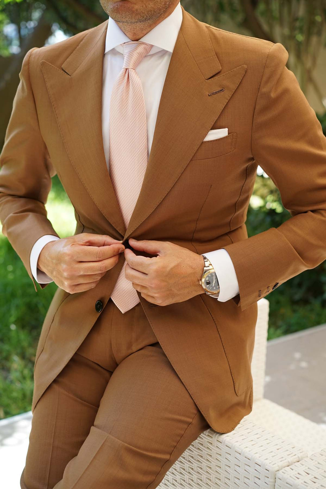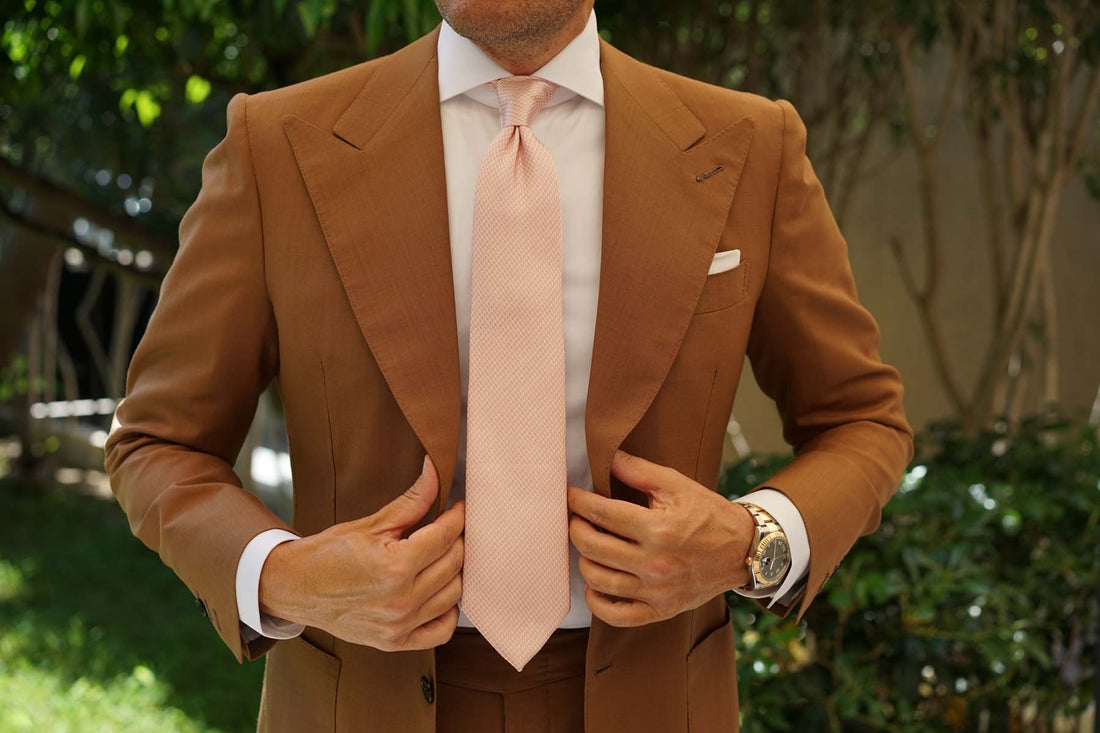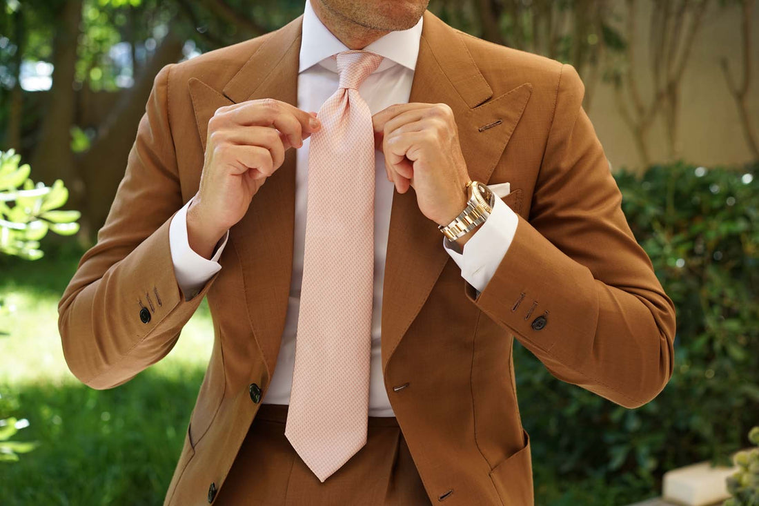 The Blush Pink Houndstooth Necktie is a vivacious piece of attire and the perfect fit for a broad range of occasions. The Brothers at OTAA first came across the iconic houndstooth check pattern in the Scottish Lowlands, in search of the Loch Ness monster. Their search for Nessy didn’t yield much success (although the younger brother did spot a fetching marlin), but the sailor on their riverboat had exquisite taste in clothing, offering each of the thread-weaving Brothers the secrets of his houndstooth weave.