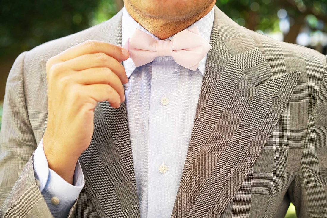 Bring a flourishing feature to your tailored wardrobe with OTAA's Blush Pink Linen Diamond Bow Tie. Superbly finessed with a minimalist blush peach complexion, this diamond bowtie proves that simplicity is synonymous with elegance. Let the gentle, delicate palette of this diamond bowtie pose a perfect complement to the plush linen material. Hand-stitched and tailored with meticulous detail, there's no doubt this Blush Pink Linen Diamond Bow Tie will gift you the most comfortable accessory you'll ever own. Designed exclusively by the Brothers at OTAA.
