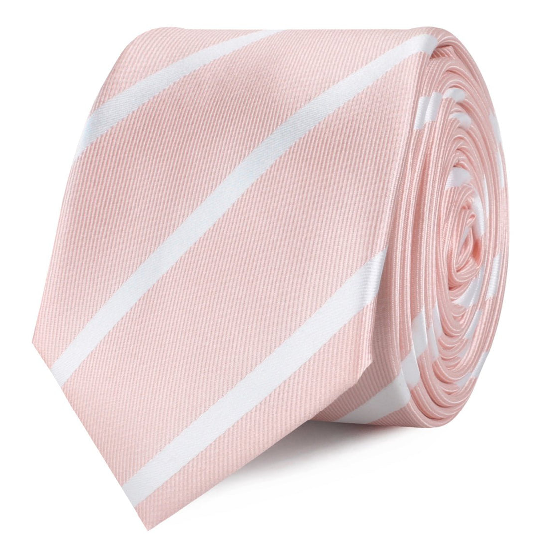 Luxurious details are part of OTAA’s rich history, and this Blush Pink Striped Skinny Tie boasts plenty. Superbly handcrafted from a fine satin cloth, this skinny tie is finessed with elegant diagonal stripes. The soft pink palette is beautifully complemented by white details for an extravagant point of difference. Wear this Blush Pink Striped Thin Tie to give a flourishing accent to your formal looks; it also goes well with considered boardroom ensembles for a confident look in the office. Designed exclusively by the Brothers at OTAA.
