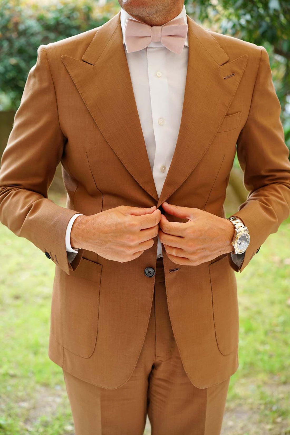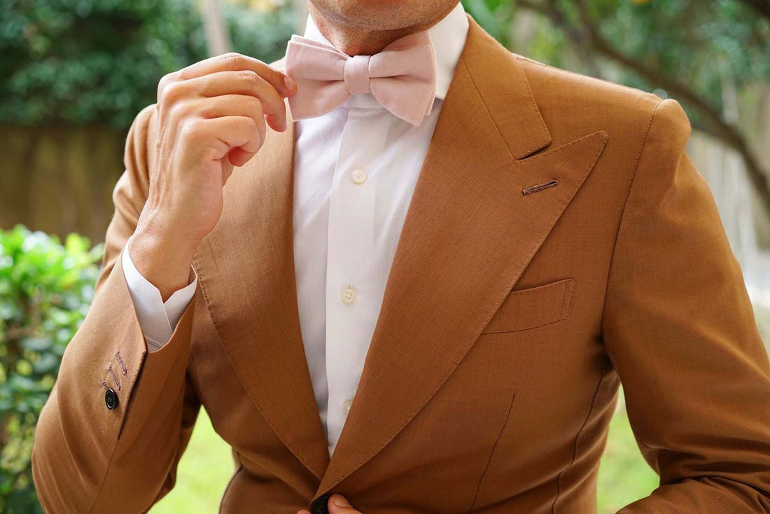 Flourishing with elegance and texture, this Blush Pink Velvet Bow Tie is a sublime choice for wedding styles. Imbued with a romantic, light pink hue, this handcrafted Blush Pink Velvet Pre-tied Bowtie is a superb asset for wedding sophistication. Its divine, plush velvet fabric boasts a lightly tufted texture that will give a depth of luxury to your tailored ensembles. Wear the Blush Pink Velvet Bow Tie to weddings and formal occasions to make the most elegant statement. It also works well with a white pocket square and will match navy, black and grey suits to perfection. Designed exclusively by The Brothers at OTAA.