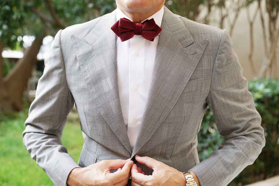 Sophisticated and textured, the Bond Burgundy Diamond Velvet Bow Tie will get you suited up to elegance and makes a lethal statement of sophistication.
