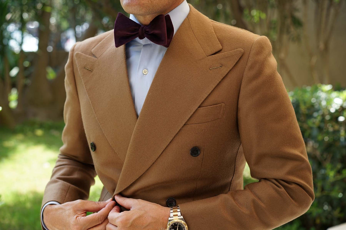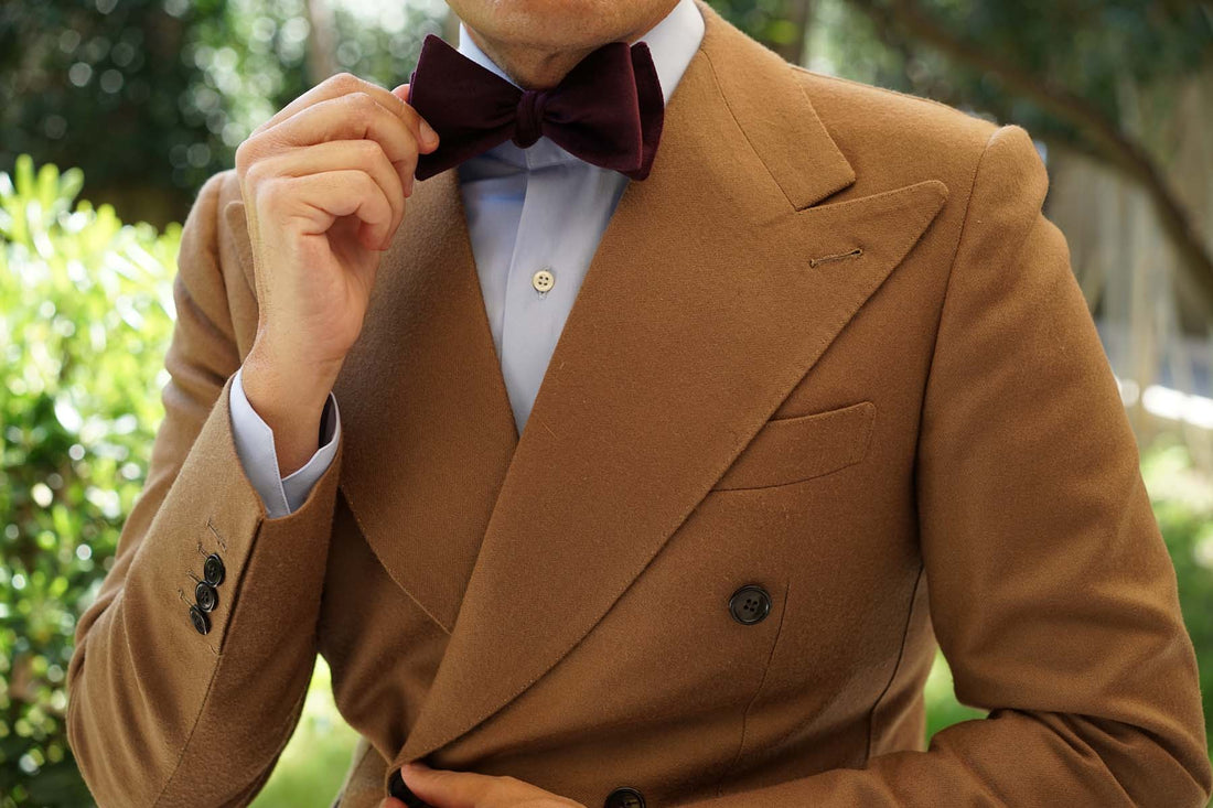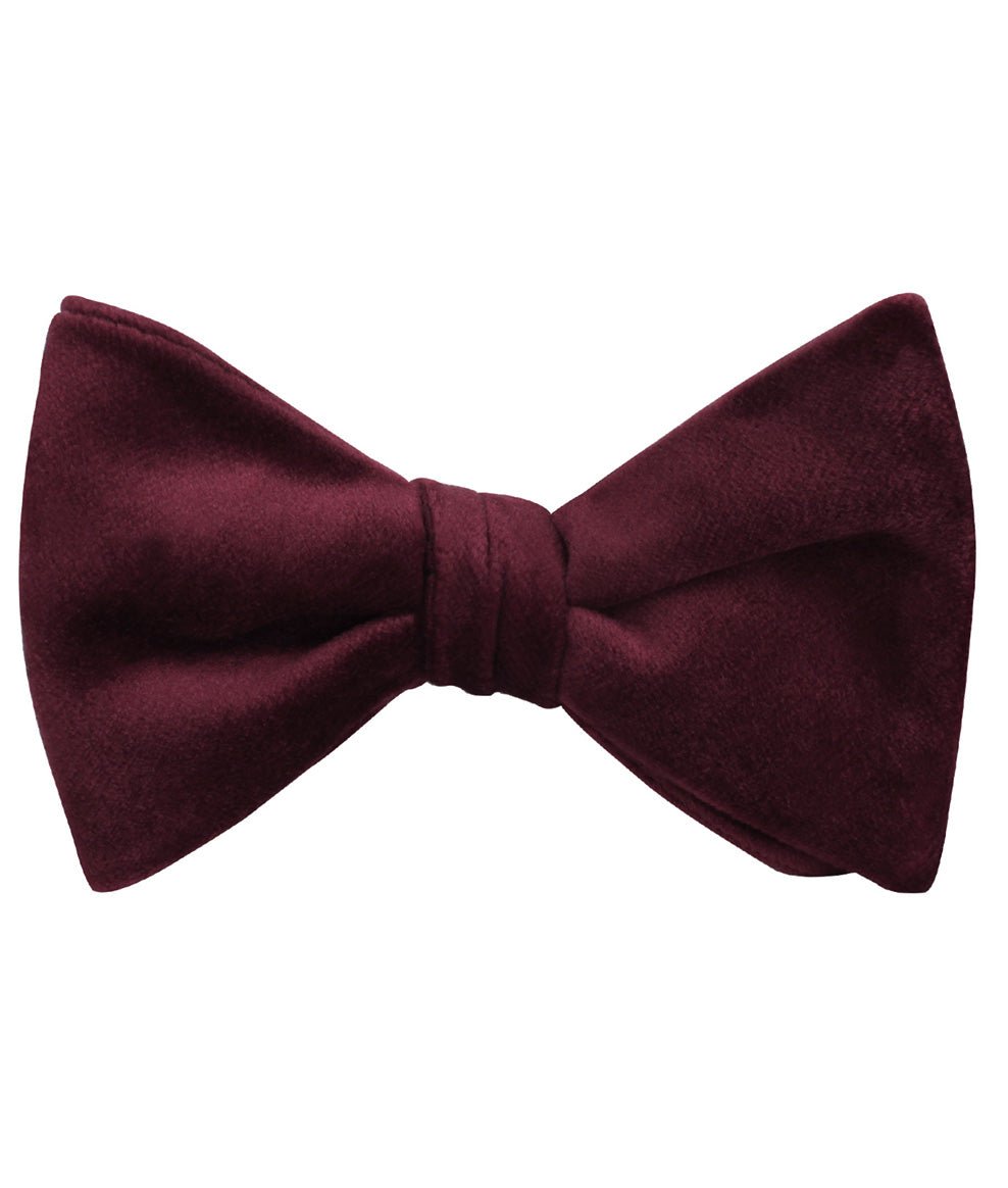 Sophisticated and textured, the Bond Burgundy Velvet Self Tie Bow Tie will get you suited up to elegance and makes a lethal statement of sophistication.