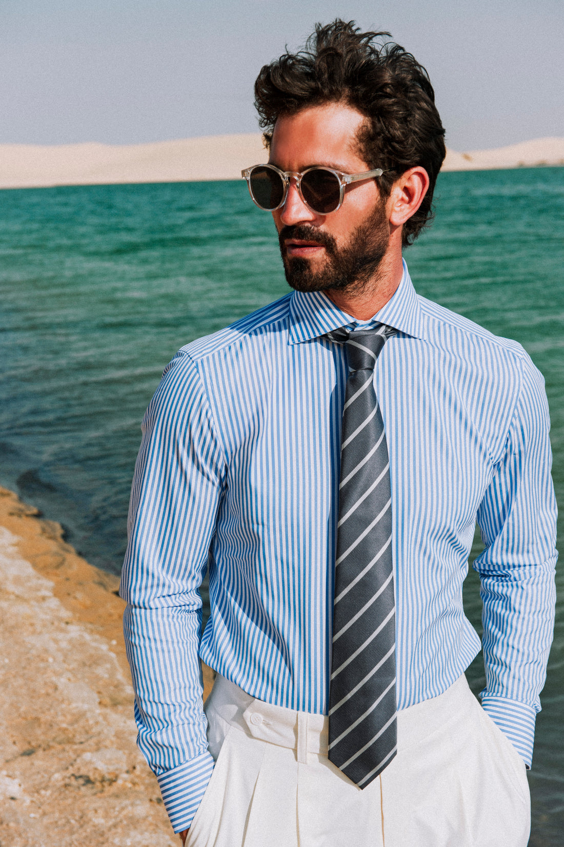 Cool, composed, and effortlessly elegant—the Sterling Slate Silver Stripe Necktie is an understated powerhouse. Featuring refined silver striping against a slate-grey canvas, this tie offers a sleek, modern take on the traditional stripe. The high-quality weave ensures a soft, flowing drape that sits beautifully all day.