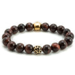 The Golden Age of piracy (1650 - 1720) was defined by the rise of new empires and the colonisation of the New World. With the likes of Blackbeard and Calico Jack dominating the seas, this Boston Red Tiger Eye Gold Skull Bracelet is designed to emanate a strong appearance. Tiger's eye is a chatoyant gemstone with golden yellow and brown hues and lustre finish. The yellow and brown stripes of this stone appear to swap complexions when viewed from different angles. The Boston Red Tiger Eye Gold Skull Bracelet is adorned with a rose gold skull that was hand-chiselled with intricate details. Let this exquisite Boston Red Tiger Eye Gold Skull Bracelet bring an accomplished completion to your day-to-day ensembles.