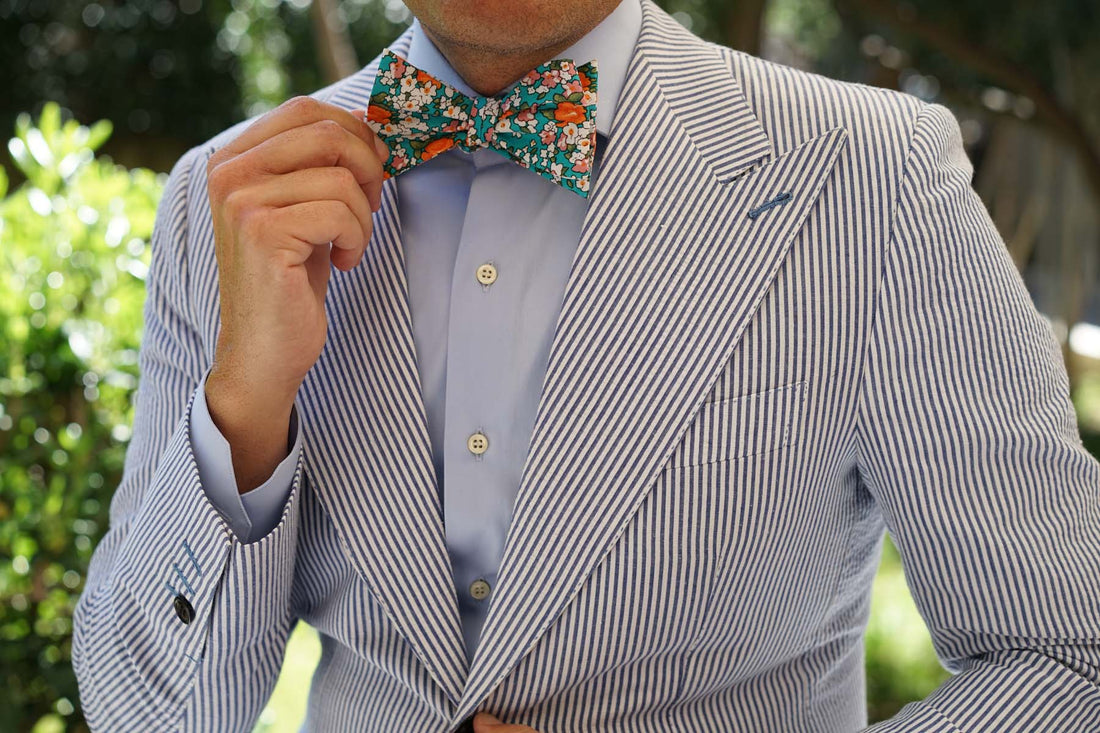 Lavishly crafted by hand and designed in-house, OTAA’s British Virgin Island Floral Self Tie Bow Tie makes an extravagant statement. Christopher Columbus first laid eyes on the British Virgin Islands in 1493 and he named them ‘Santa Ursula y las Once Mil Virgenes. The glistening blue seascapes of the islands inspired the brothers to use a teal palette, and the unique flora became a floral motif; culminating in an elegant design.