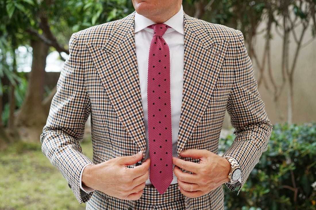 Add a note of panache to your look with the enthralling details of OTAA's Brizo Pink Polka Dot Knitted Tie. Handcrafted immaculately from plush fabric and embellished with an ebullient pink palette, this in-house design provides a knock out accessory to your evening looks. This marvellous knit is finessed with a classic diamond-cut and luxurious black dotted features to escort you lavishly from the boardroom to evening soirees.