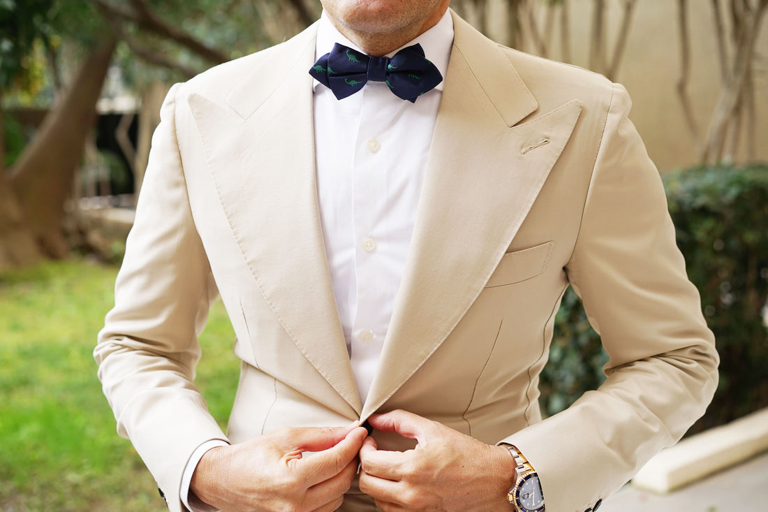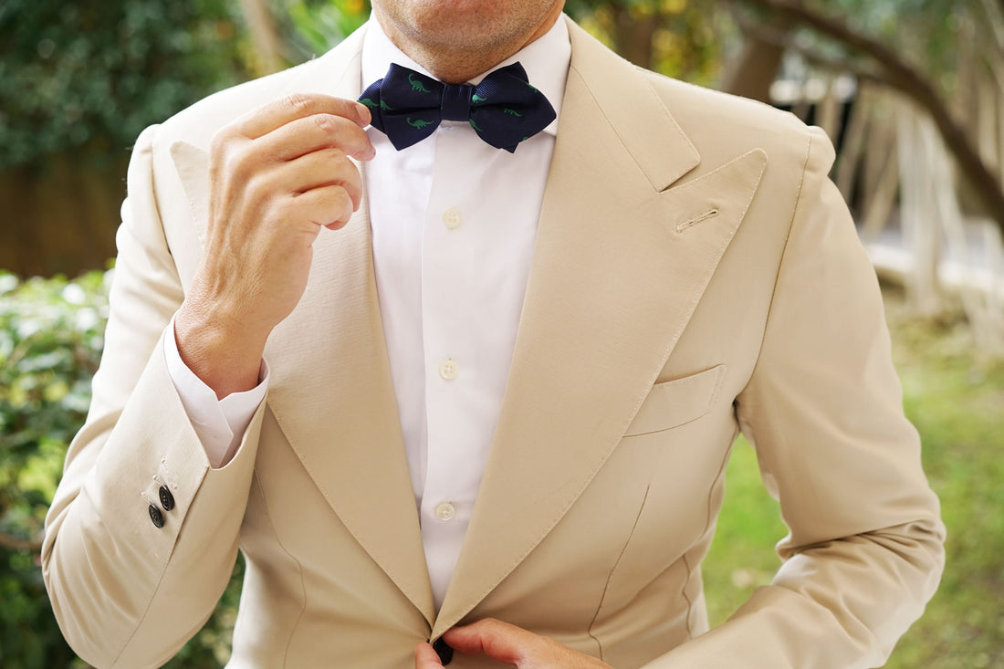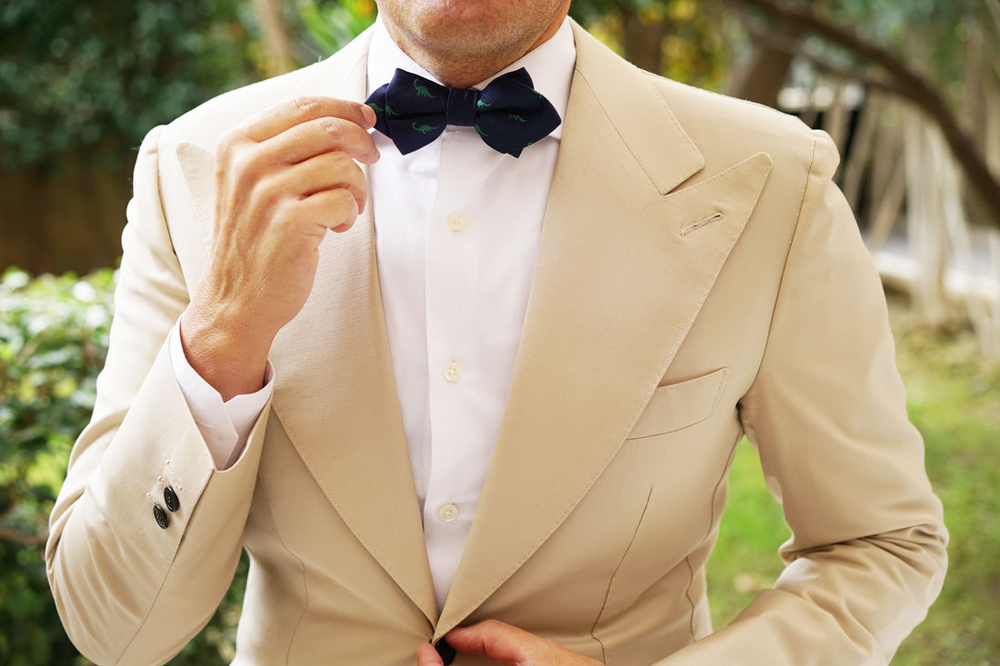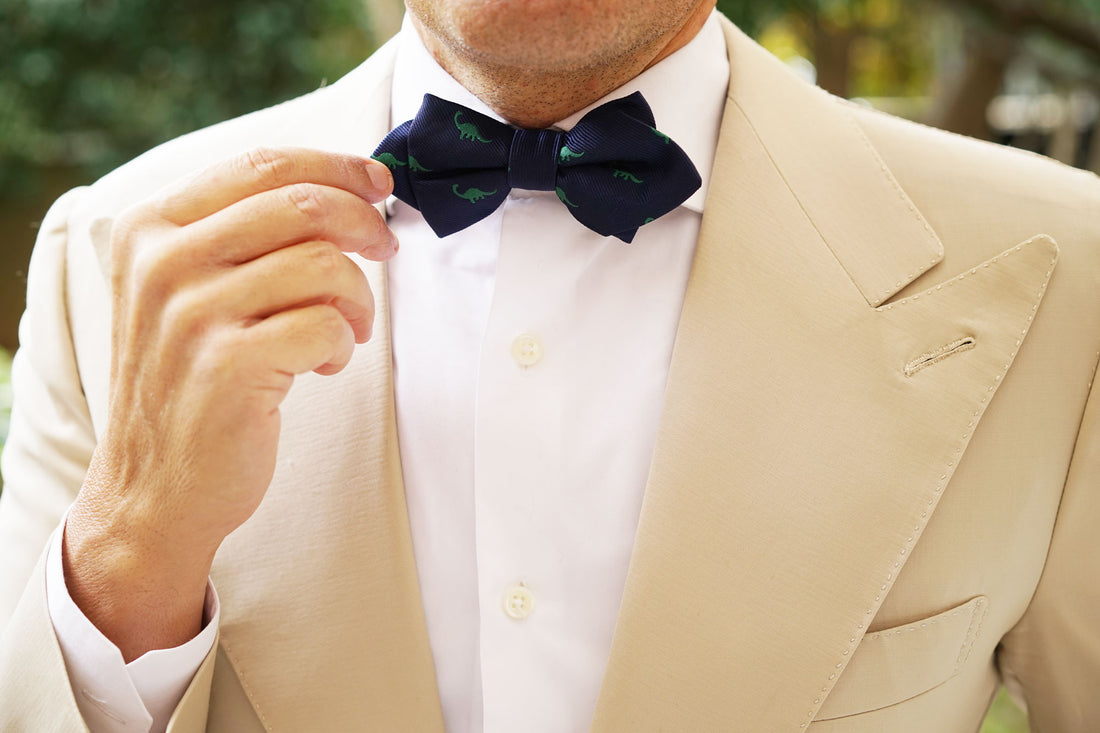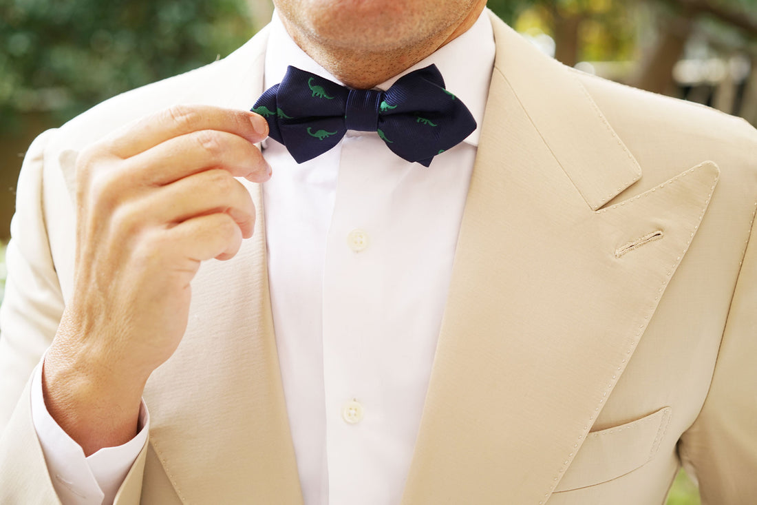 Our hand-sewn method allows the Brontosaurus Dinosaur Pre tied Diamond Bowtie to exhibit extraordinary detail as there is little machinery used in the crafting of this tie. Touches such as these make all the difference. Inspired by this lovable Brontosaurus Dinosaur that we saw in the flesh (this definitely happened), our Brontosaurus Dinosaur Diamond Bow Tie exudes sophistication and is hand cut and sewn with on a classic navy backing. Designed exclusively by The Brothers at OTAA.
