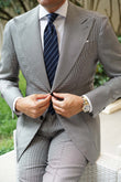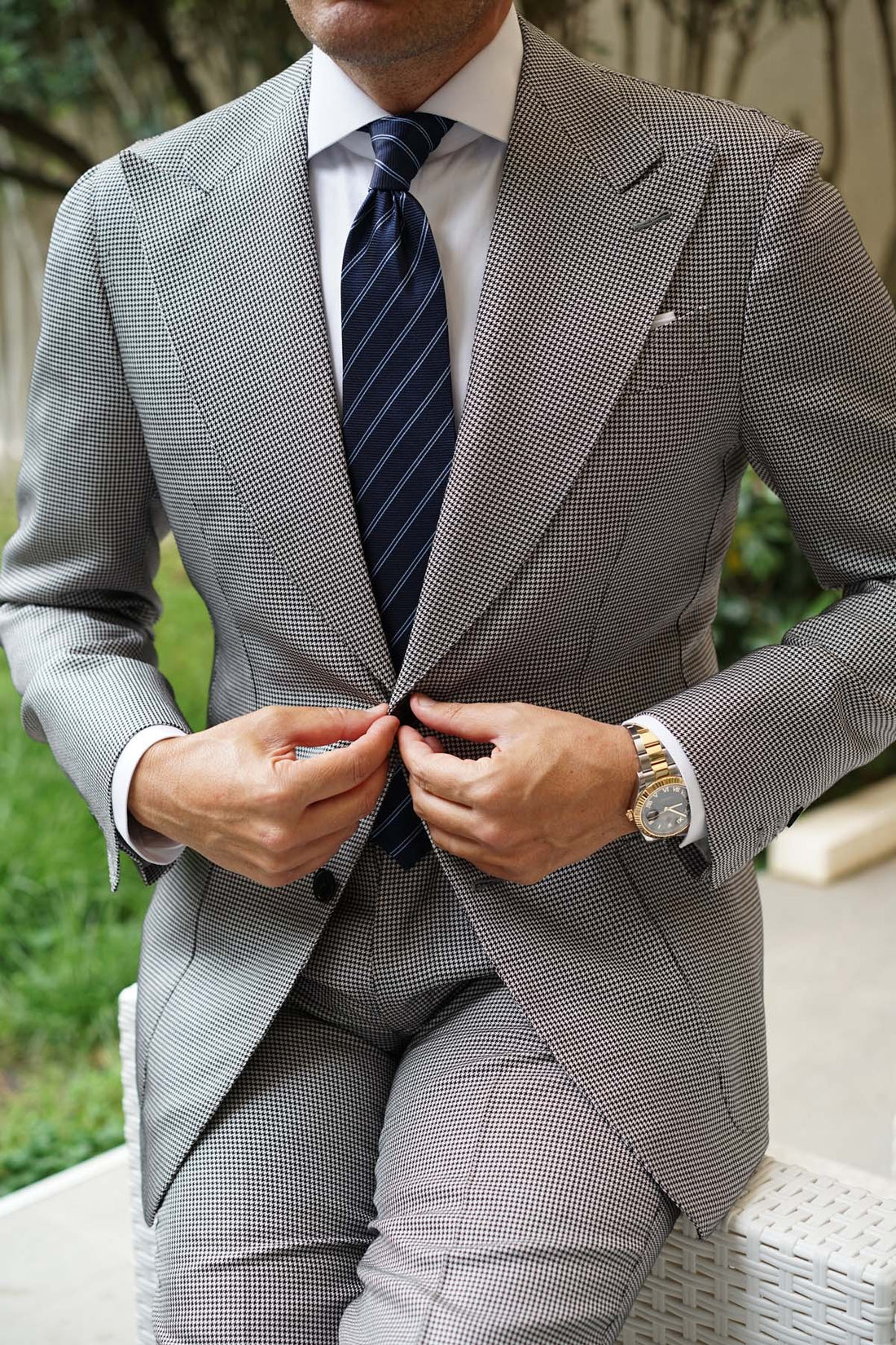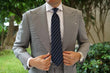 Assembled by hand, the fabric is cut, sewn and stitched to immaculate perfection that is soft to the touch perfectly balanced with a subtle grain that ensures this wonder is as pleasant to touch as it is to look at. Thin bands of rich, gently sheening satin woven in sky blue are streaked diagonally across the matte canvas of the horizontally stitched navy blue body of the Brooklyn Navy Blue Tie to create a balanced minimalist design.