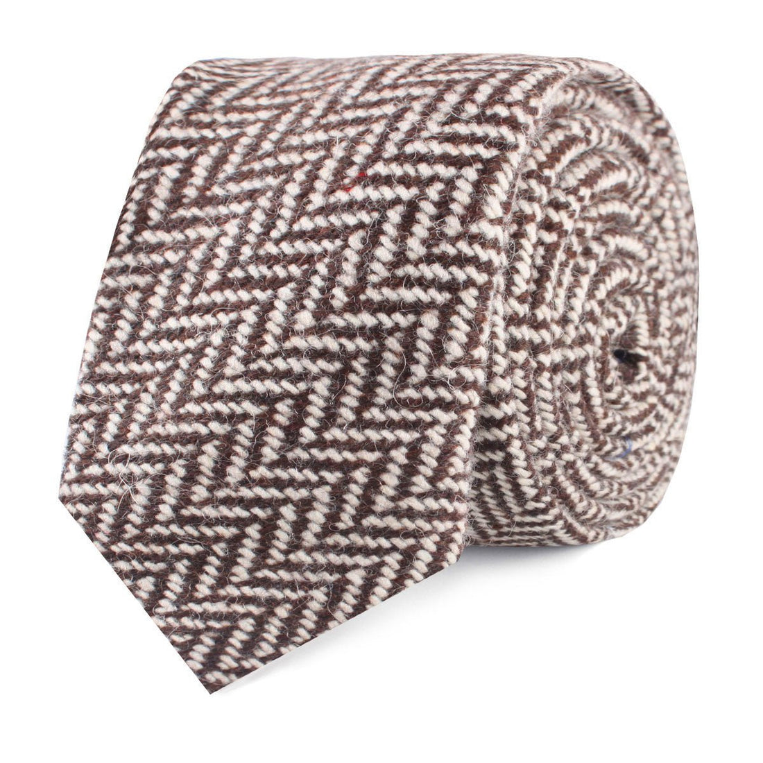 This Brown Chevron Wool Thin Tie boasts a magnificently thick body that’s plush to the touch; making it a perfect staple for the cooler months. Finessed with an eye-catching herringbone design, this thin tie is imbued with decadent brown and white hues for a refined outlook. Pair this superb design with a classic suit ensemble to channel a sleek aesthetic at every occasion. Designed exclusively by the Brothers at OTAA.