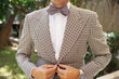 Brown Herringbone Linen Self Tie Diamond Tip Bow Tie 2
