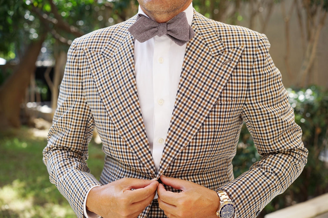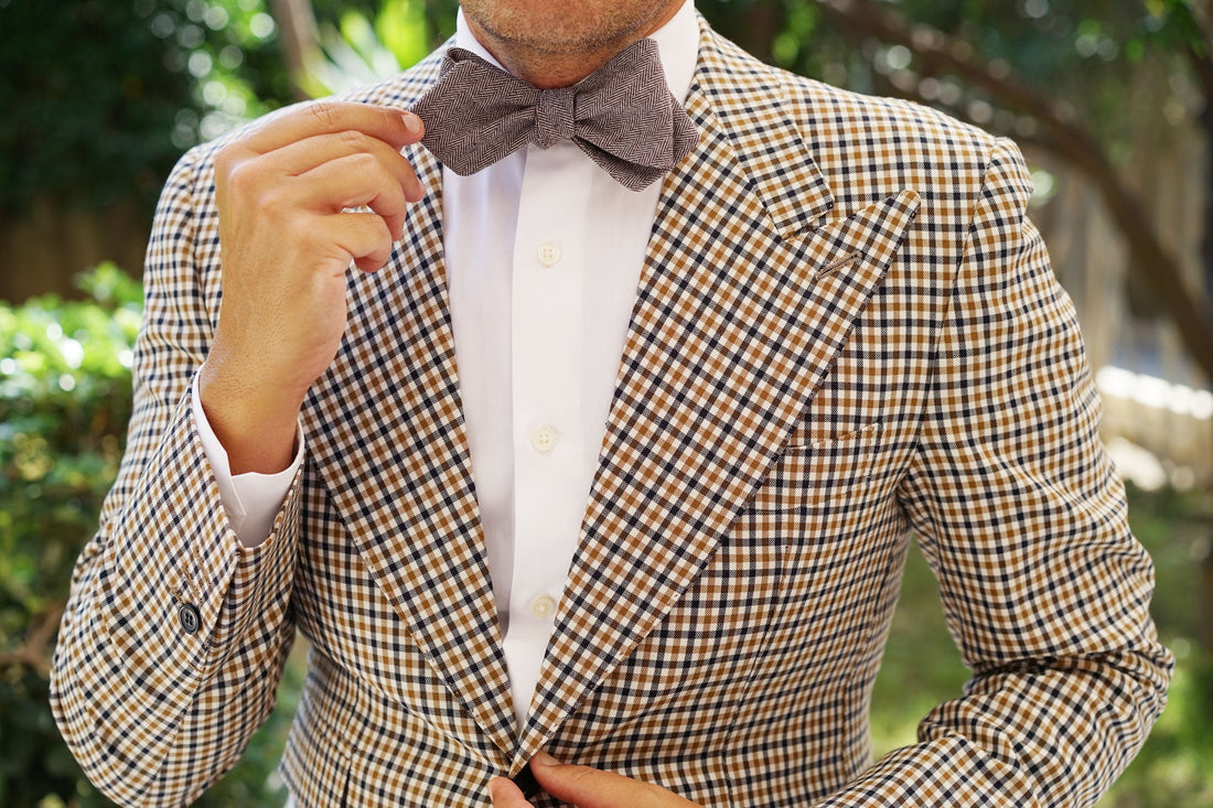 Brown Herringbone Linen Fabric Self Tie Diamond Tip Bow TieL183