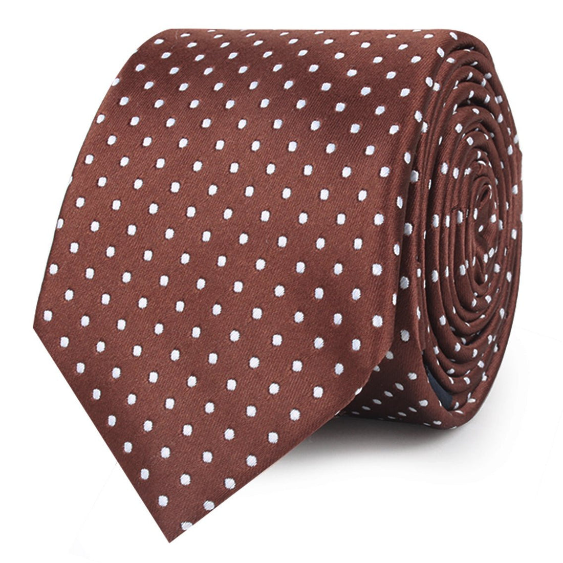 Detailed and luxurious, this Brown Mini Polka Dots Skinny Tie is a faultless staple. A classic polka dot tie is a wardrobe must-have, and this Brown Mini Polka Dots Thin Tie is an exquisite contender. Elegantly handcrafted from a fine satin cloth, this skinny tie offers a smooth surface and a subtle lustre finish. The vintage chocolate hues are superbly complemented by artisanal white polka dots for a stylish outlook. Wear this Brown Mini Polka Dots Skinny Tie to add a flourishing accent to formal styles. Designed exclusively by the Brothers at OTAA.