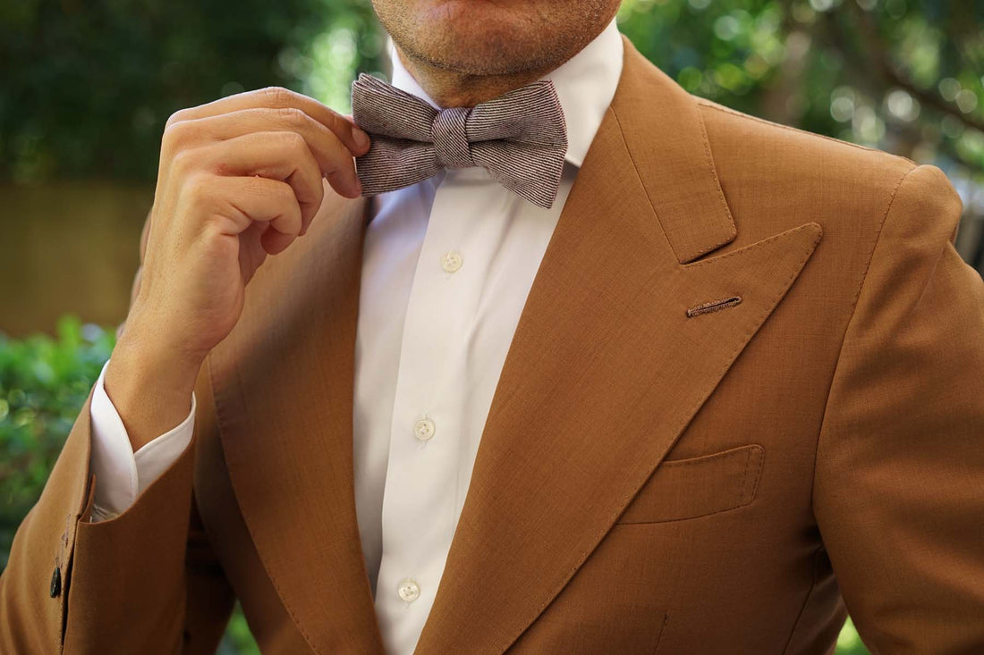 Add a dash of Twill to your ensemble with OTAA's Brown & White Twill Stripe Linen Pre-tied bowtie. This iconic pattern that originated in the Scottish Lowlands has evolved into a modern style staple that retains its timeless look. Made of soft and lightweight linen, this Brown & White Twill Stripe Linen Bow Tie is the best way to make a fashionable statement for spring and summer.