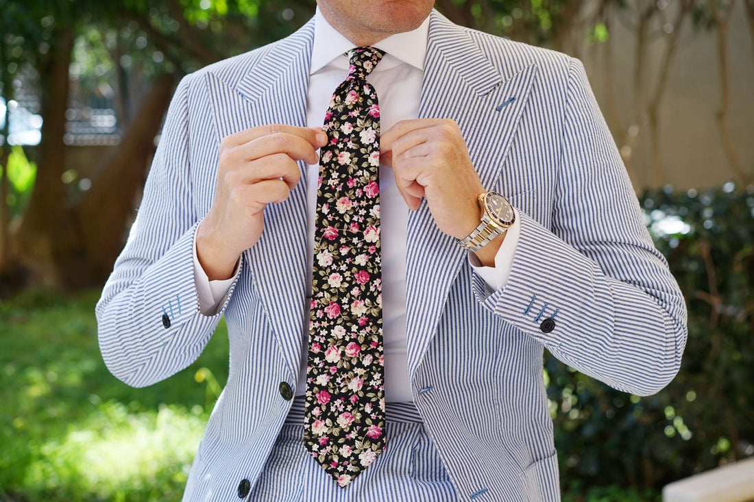 Crafted by hand and tailored with excellence, this Bucharest Blossom Floral Tie showcases a heavenly floral design. Boasting an indulgent black palette with pink, white and green highlights, this necktie offers an artistic accent to your formal tailoring. The elegant blossoms of this tie are unmistakably designed by the dedicated Brothers at OTAA. Wear this Bucharest Blossom Floral Necktie to give your suit an accomplished edge.