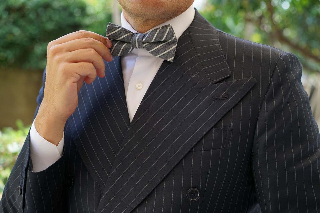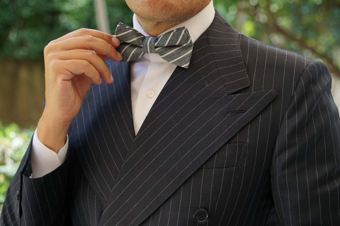 The Budapest Pinstripe Bow Tie offers a deep grey palette that’s beautifully complemented by refined white diagonal stripes. The hand-stitched detailing and breathable cotton fabric makes this pre-tied bowtie a versatile asset to your tailored everyday looks. Designed exclusively by the Brothers at OTAA, this Budapest Pinstripe Bow Tie will elevate your workweek and off-duty outfits with a sophisticated tone.