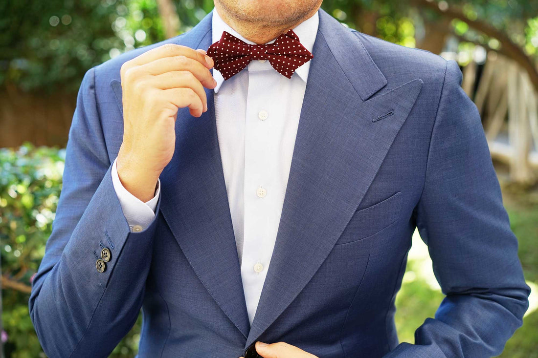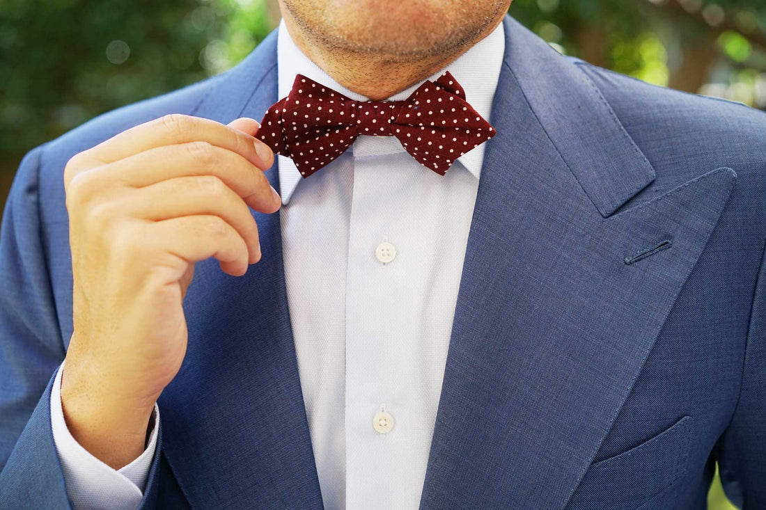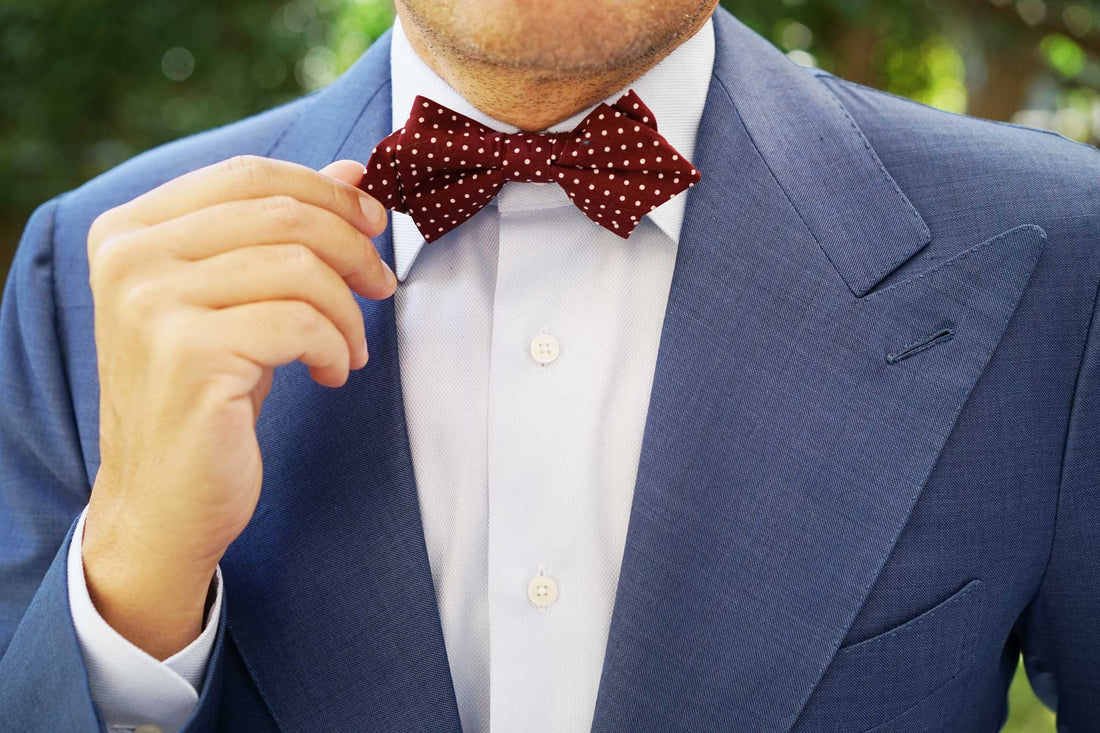 Burgundy is derived from the French word Bordeaux; the wine that’s produced by their world-renowned vineyard region. Boasting a sophisticated burgundy palette, this Burgundy Cotton Polkadot Diamond Bowtie is complemented by artistic white polka dots for an eye-catching appeal. Crafted by hand and tailored with excellence, all you’ll need is a martini in-hand to channel the dapper aesthetic of Mr Bond. We’ll have it shaken, not stirred.