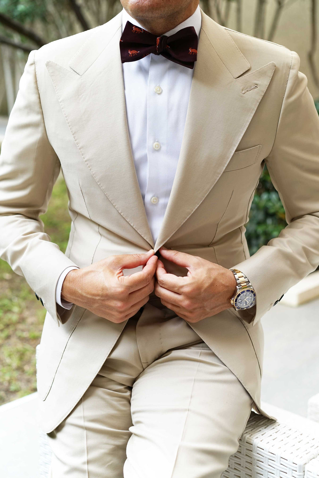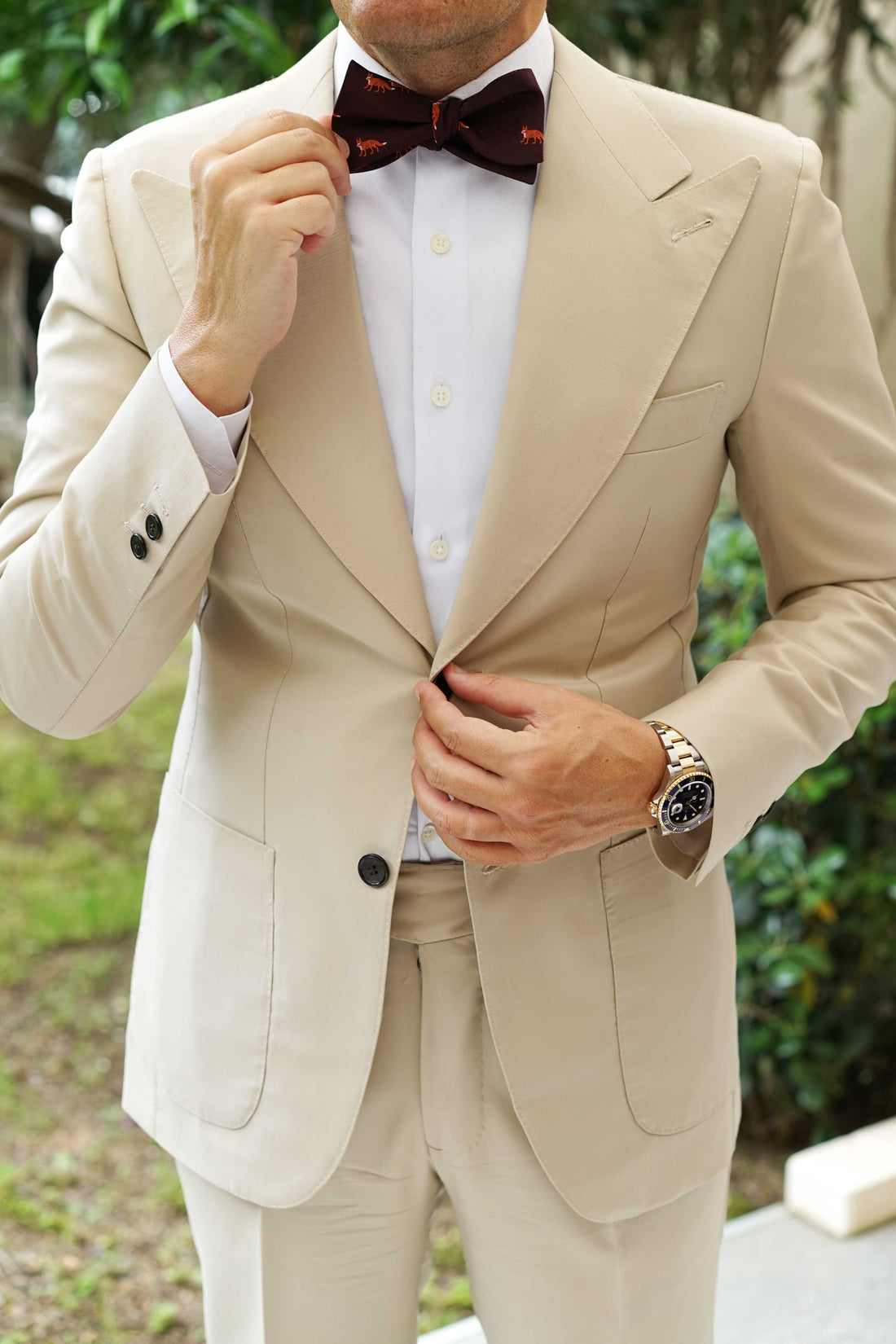 This Burgundy Fox Self Bow Tie is a knock-out. Crafted by hand and designed in Melbourne, it has been cut for a sharp, neat fit and finished with a handsomely threaded burgundy backing to add a stylish point of difference. Foxes are solitary in nature and they’re related to wolves. But unlike their relatives, foxes are not pack animals. When raising their young, they live in small families called a “leash of foxes” or a “skulk of foxes” in underground burrows. Otherwise, they hunt and sleep alone. Inspired by the fox that no one ever understood, we bring you the Burgundy Fox Self Tie Bowtie. Designed exclusively by The Brothers at OTAA.
