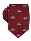 Luxuriously handcrafted from a fine satin cloth, this necktie features a textured surface with lavish bicycle motifs. The rich burgundy palette invokes a decadent appeal that’s superbly complemented by the white bicycle accents. Wear this Burgundy French Bicycle Tie to give a refined completion to formal ensembles. Designed exclusively by the Brothers at OTAA.