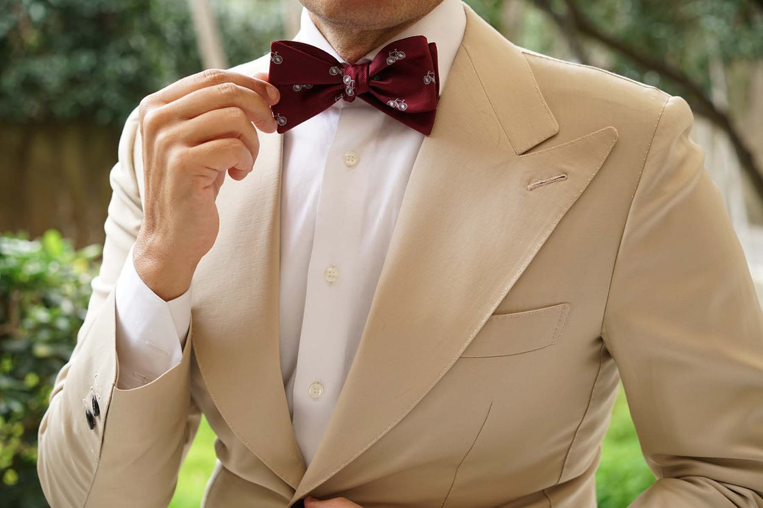 OTAA’s Burgundy French Bicycle Self Tie Bow Tie exudes a wealth of elegance. During the Victorian era, the bicycle was a popular mode of transport amongst wealthy French aristocrats. Used as a statement of sophistication and status, the bicycle was an envied vehicle as compared to loud horses and carriages. This untied bow tie by OTAA will imbue your tailored looks with heritage and refinement.