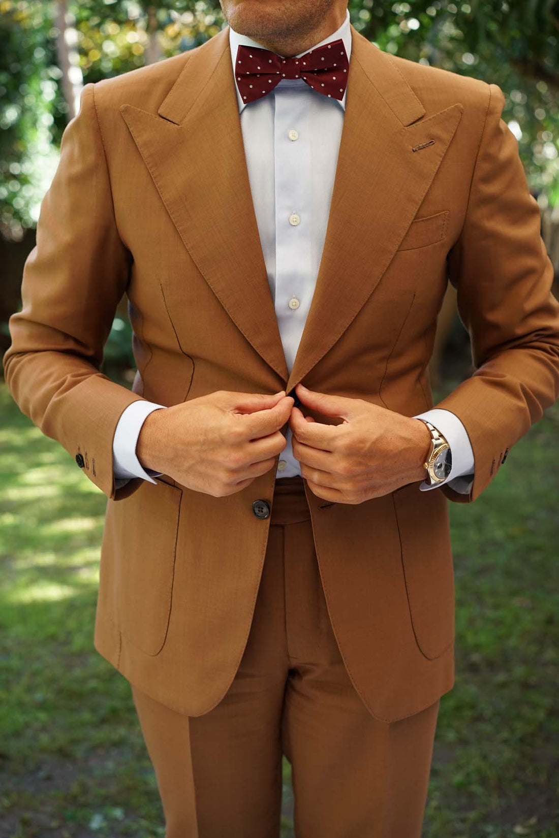 This Burgundy Polka Dots Bow Tie adds a flawless feature to formal styles. A classic polka dot bow tie is a wardrobe must-have, and this superb pre-tied bowtie is a luxurious contender. Stitched by hand from a fine satin fabric, this Burgundy Polka Dots Pre-tied Bowtie features diagonal lined textures for an exclusive look. The burgundy complexion imbues an indulgent feel that is perfectly complemented by the fresh white accents. Wear this Burgundy Polka Dots Bow Tie to make an elegant statement at formal occasions; alternately wear it to the office for an accomplished look. Designed exclusively by the Brothers at OTAA.