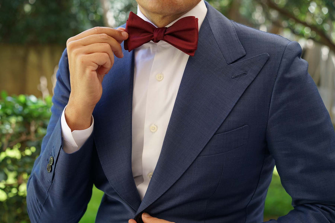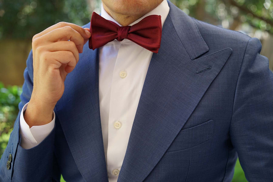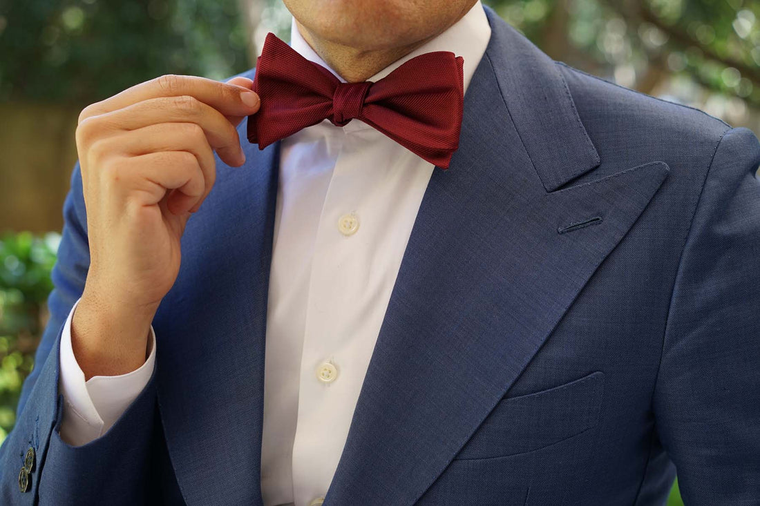 Burgundy Weave Self Bow Tie