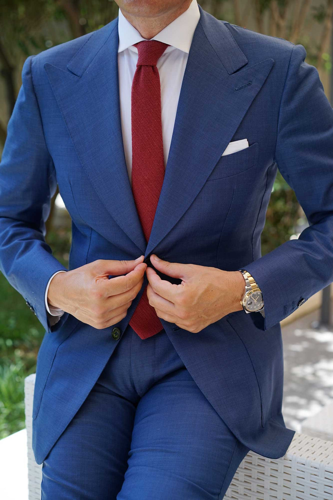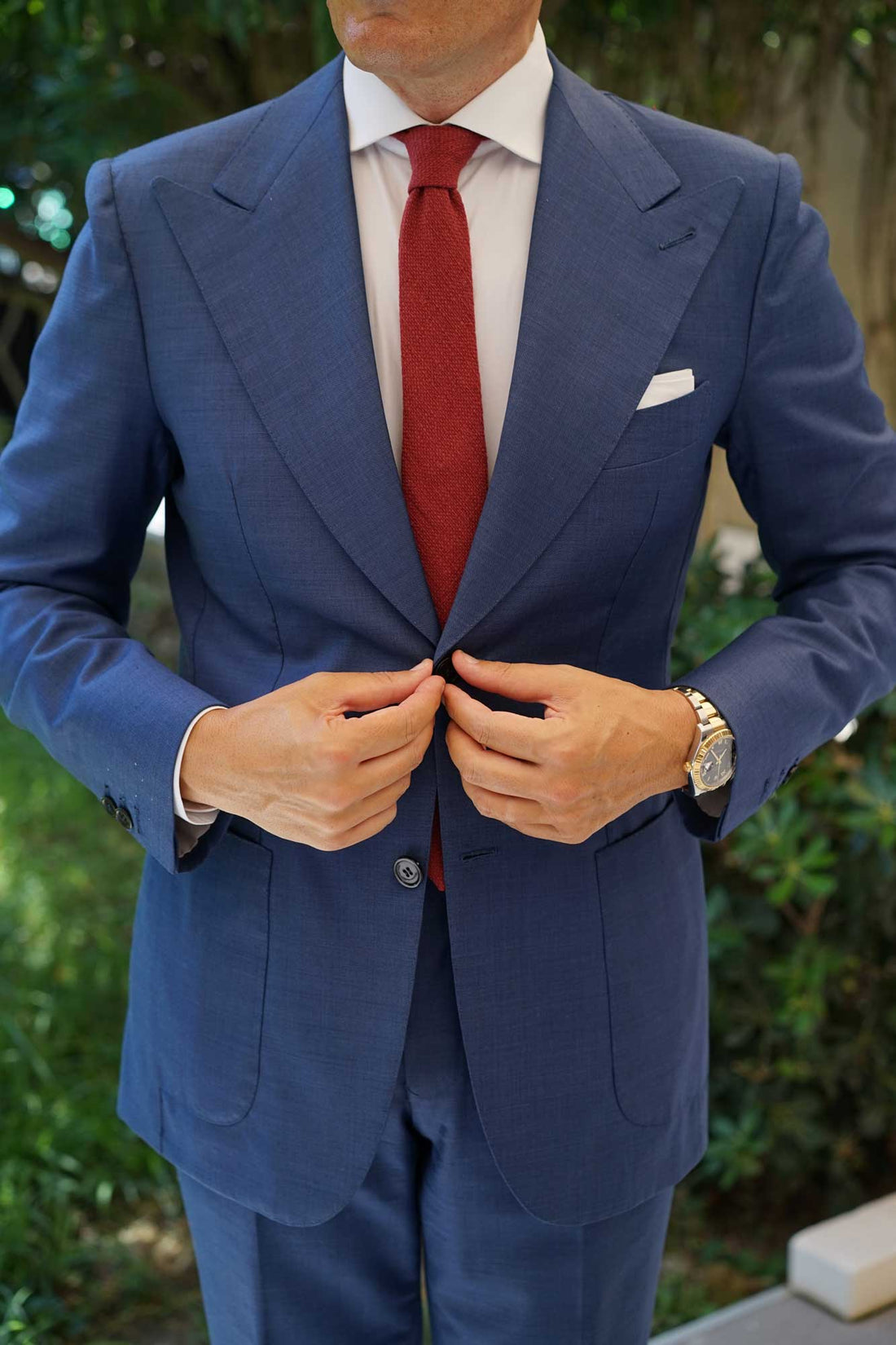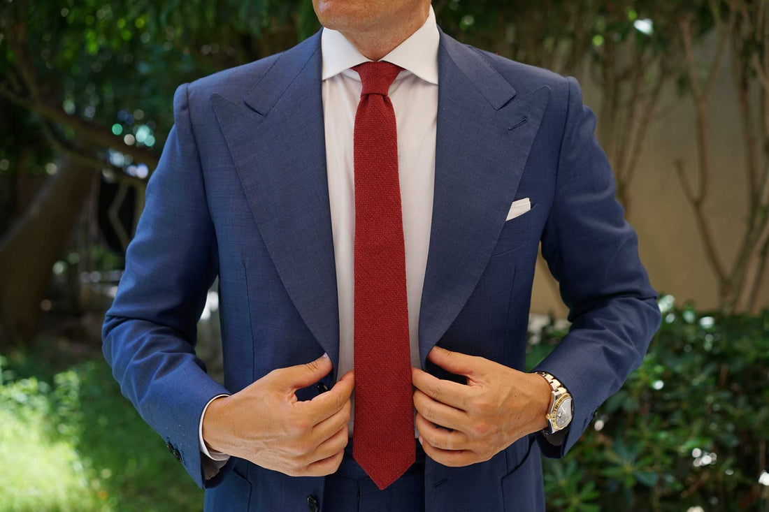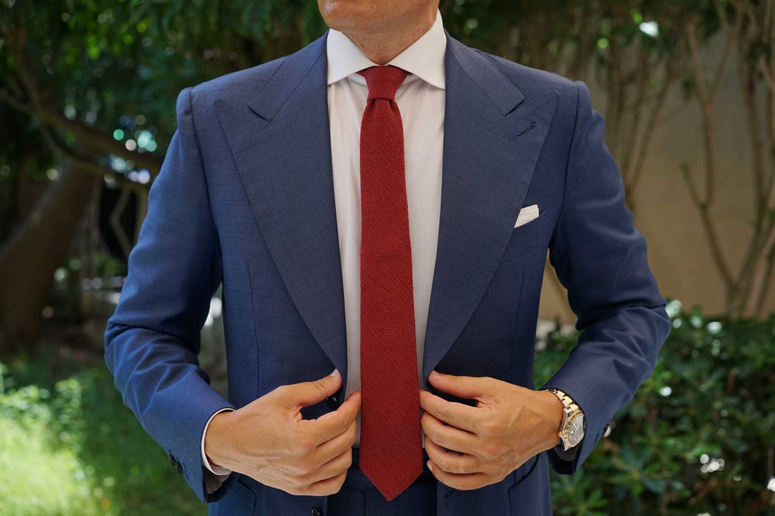Burnt Burgundy Basket Weave Linen Skinny Tie