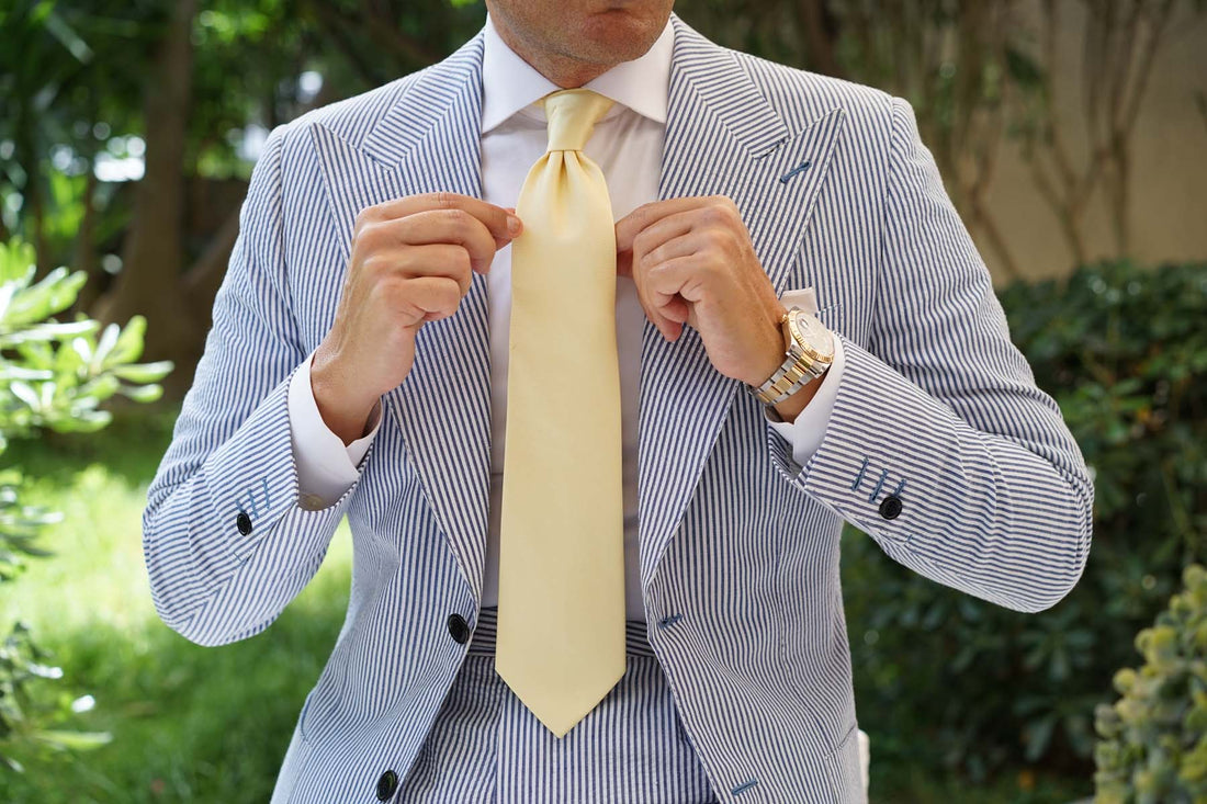 The Canary Blush Yellow satin weave serves to enrich both the visual and tactile scope of the necktie with the highest fidelity of hand-cut and sewn threads. The light fabric is finely textured to the feel, with an added feeling of softness to the shimmering fabric itself. The Canary Blush Weave Tie will add accents of distinct class and prestige to your ensemble.