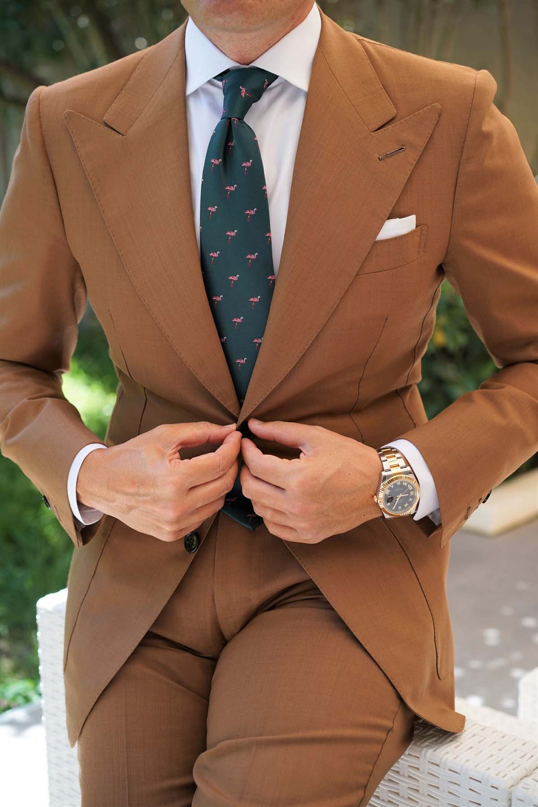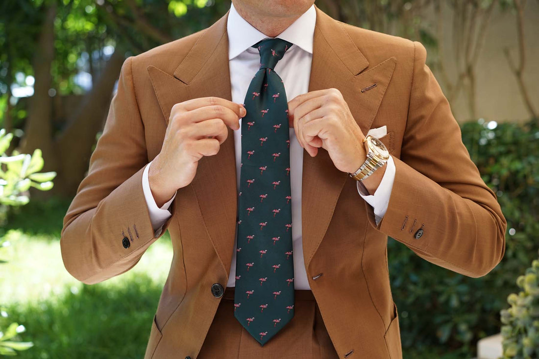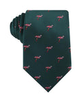 The Caribbean Royal Green Flamingo Necktie is a knock-out. Crafted by hand and designed in Melbourne, it has been cut for a sharp, neat fit and is finished with a handsome forest green backing to add a stylish point of difference. Flamingos often stand on one leg, the other leg tucked beneath the body. The reason for this behaviour is not fully understood. Inspired by the bird who no one ever understood, we bring you the Caribbean Royal Green Pink Flamingo Necktie. Designed exclusively by The Brothers at OTAA.