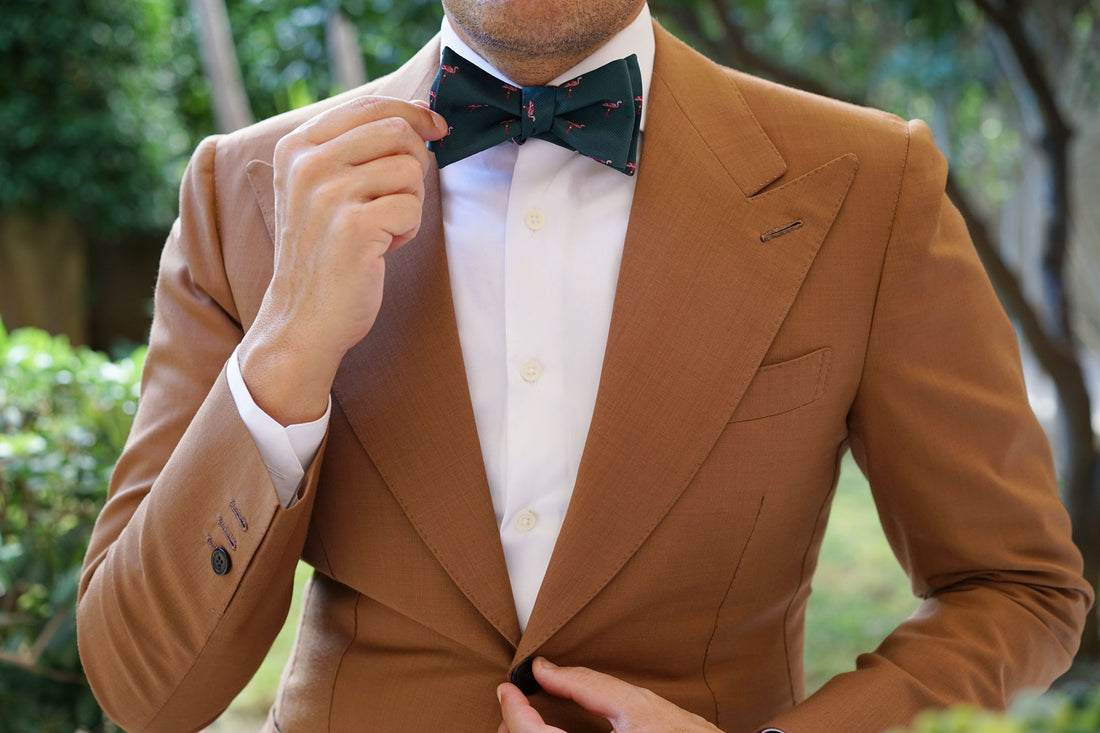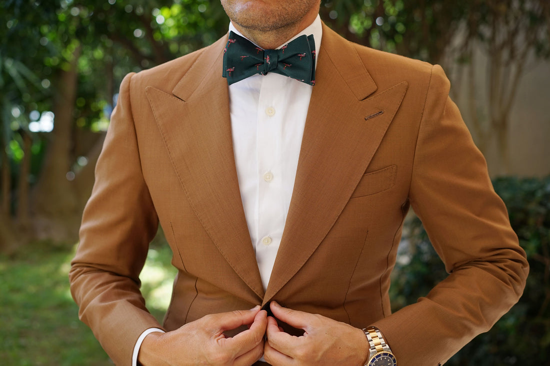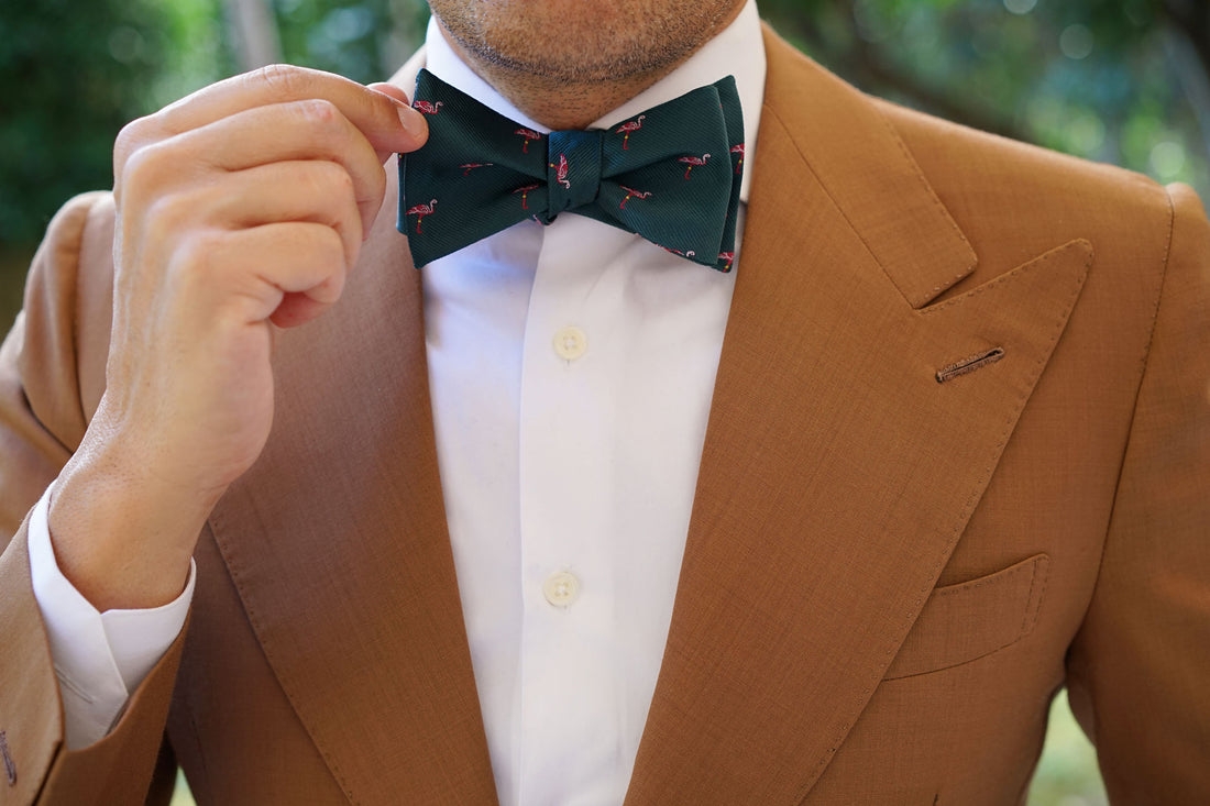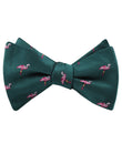 The Caribbean Royal Green Flamingo Self Tie Bow Tie is a knock-out. Crafted by hand and designed in Melbourne, it has been cut for a sharp, neat fit and is finished with a handsome forest green backing to add a stylish point of difference. Flamingos often stand on one leg, the other leg tucked beneath the body. The reason for this behaviour is not fully understood. Inspired by the bird who no one ever understood, we bring you the Caribbean Royal Green Pink Flamingo Self Tie Bow Tie. Designed exclusively by The Brothers at OTAA.