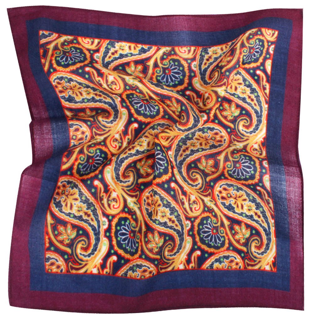 The Castellano Paisley Wool Pocket Square is a great choice for the true businessman. The paisley design will give an attitude to your outfit and give you a game plan to make a noise in the world. The bold colours are an indication of your strong personality. With this pocket square, people will truly know who the boss is.
