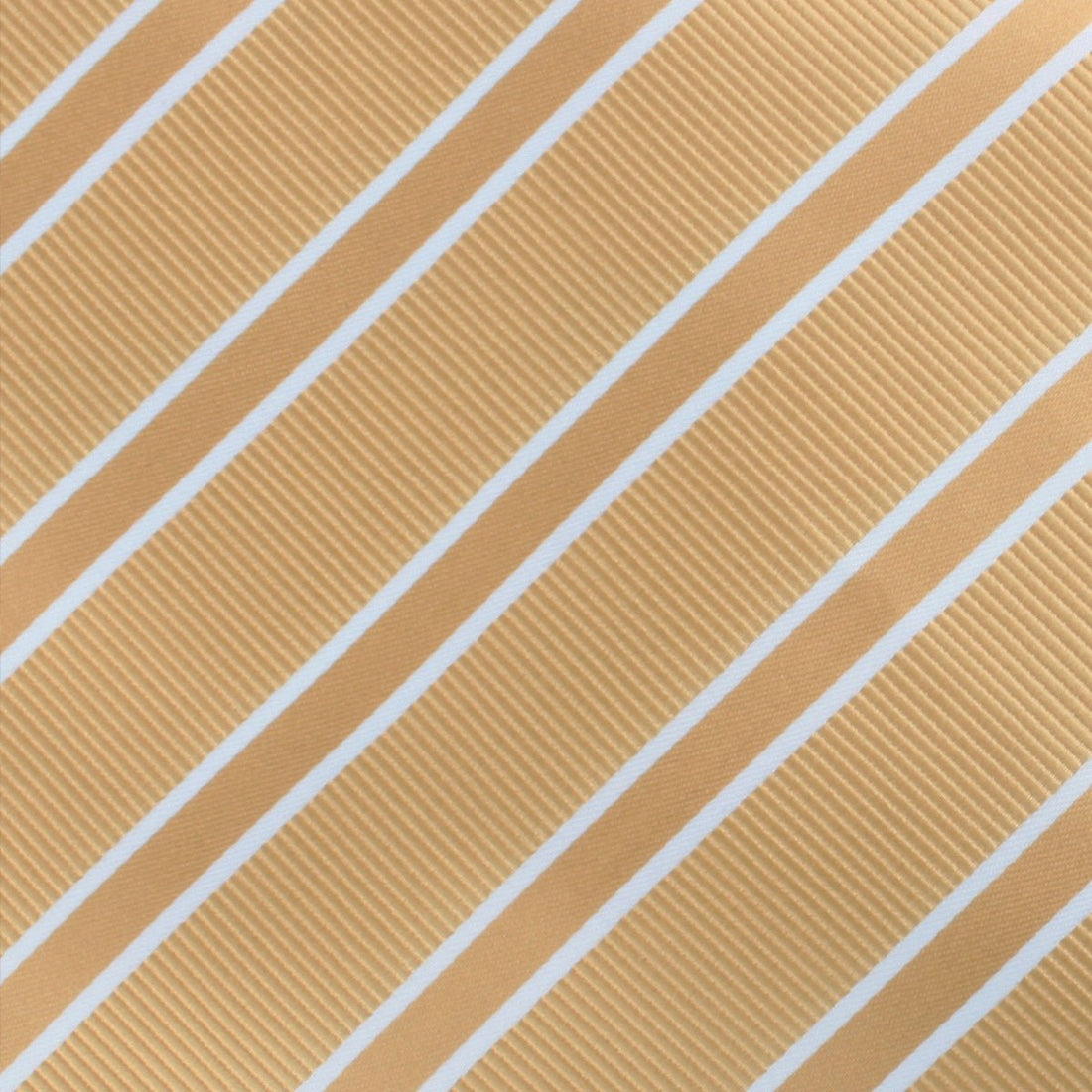 Assembled in-house by hand, the satin fabric is cut, sewn and stitched to perfection. Thin ribbons of lightly chromatic white diagonally cut across the gentle sheen of the champagne caramel gold of the satin body, with multi-directional weavings deftly creating an angular combination of textures. Enticingly balanced with an elaborate yet minimalist design, the Champagne Gold Double Stripe Tie is set to be a trend-setting staple in the landscape of formal attire.