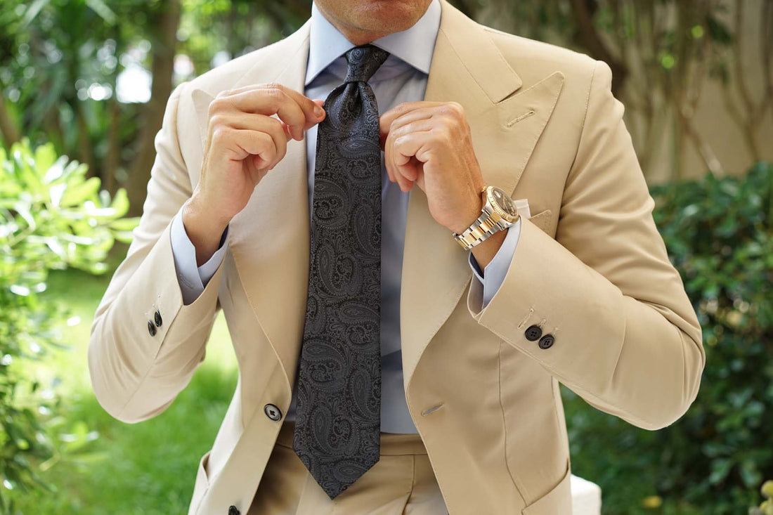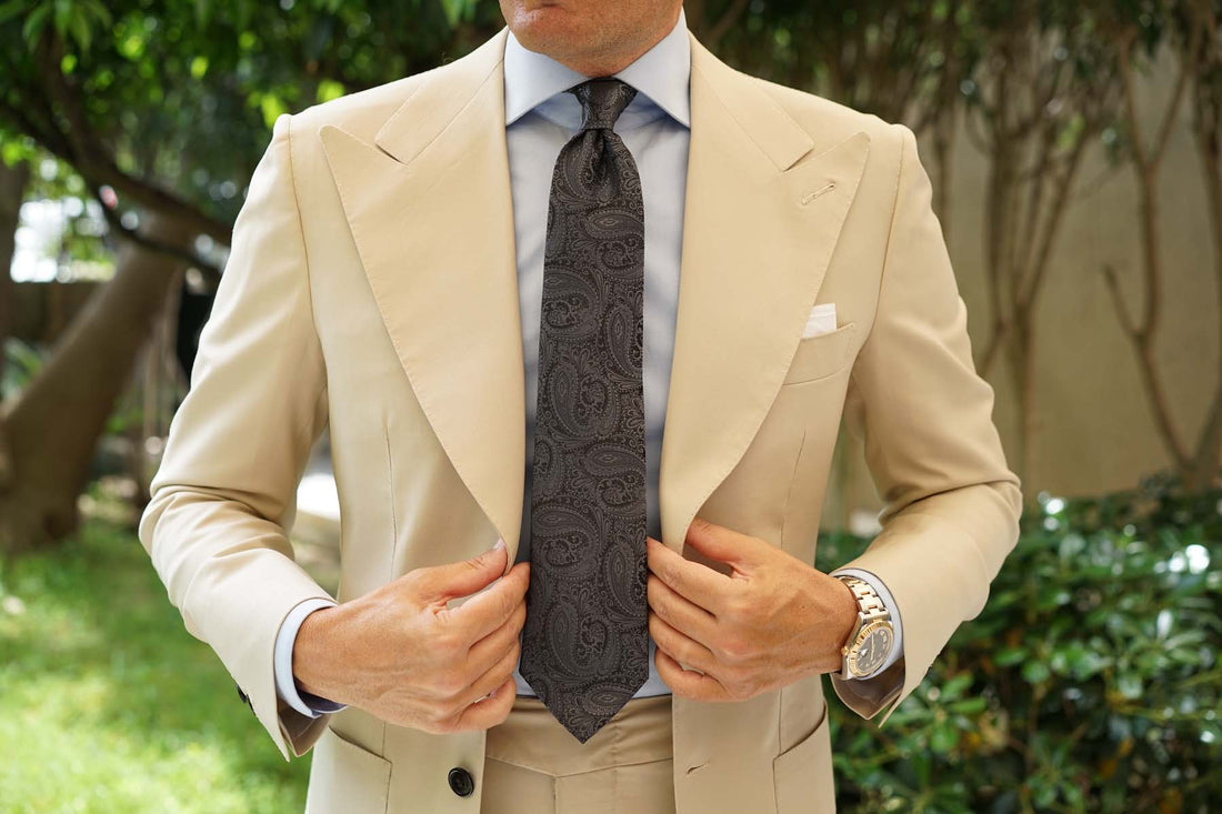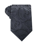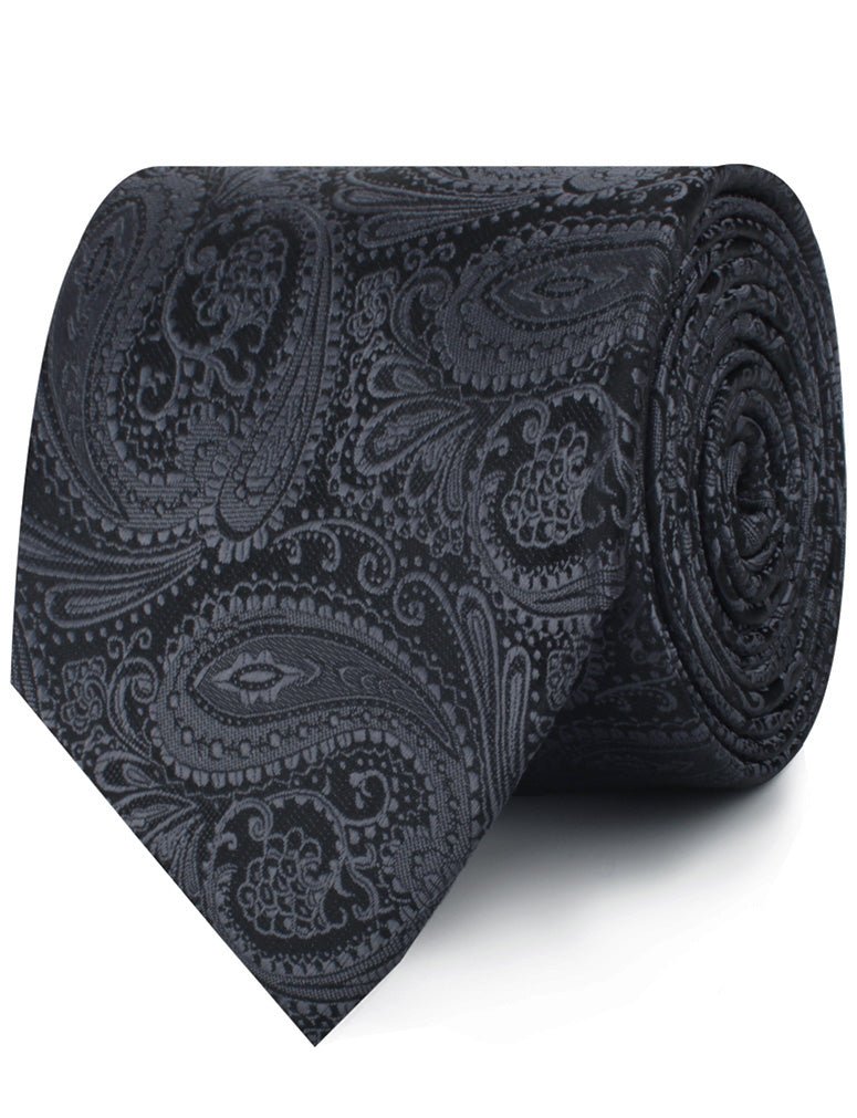 The elaborate charcoal grey paisley embroidery shines out against the matte black background, demonstrating an expertly hand-sewn tie. Smooth to the touch, the satin Charcoal Grey Paisley Tie will imbue your outfit with a subtle undertone of elegant creativity.