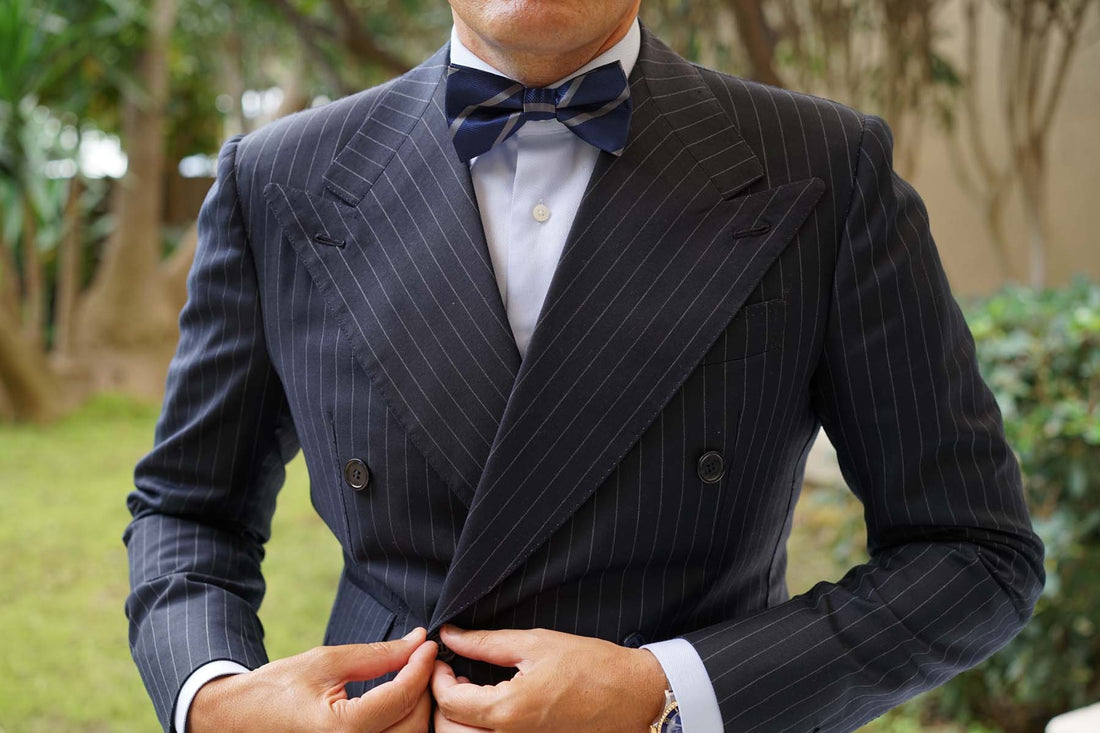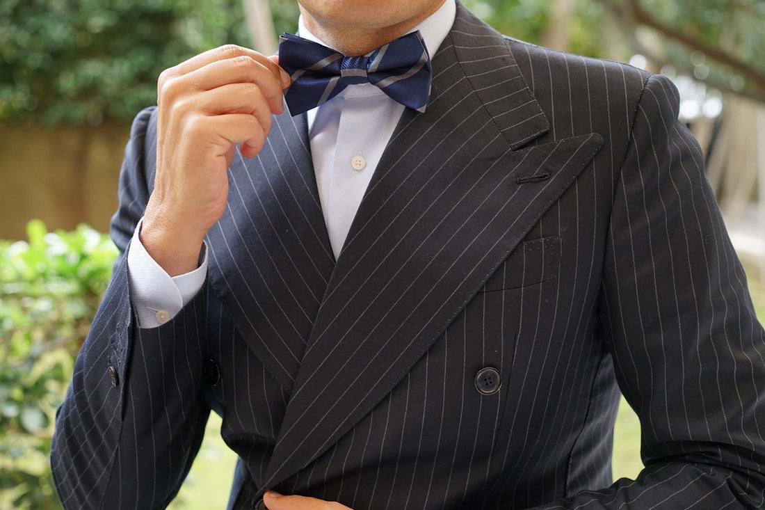 Crafted by hand and heavenly textured, the Charcoal Grey Striped Bow Tie makes a flawless staple. This handcrafted satin pre-tied bowtie is complemented by horizontal lined embellishments for luxurious texture. Finessed in a refined navy palette, the Charcoal Grey Striped Bow Tie features charcoal grey stripes for a stylish point of difference. Demonstrating OTAA’s high-quality philosophy, this pre-tied bowtie is hand-stitched from a satin cloth and tailored to perfection. Wear it to add a lavish completion to your formal styles. Designed exclusively by the Brothers at OTAA.