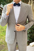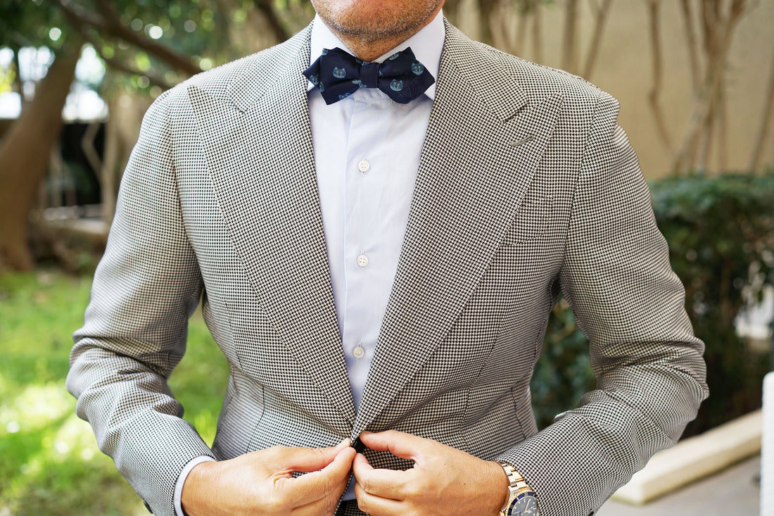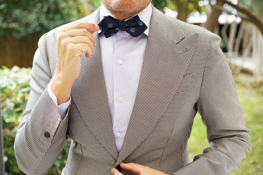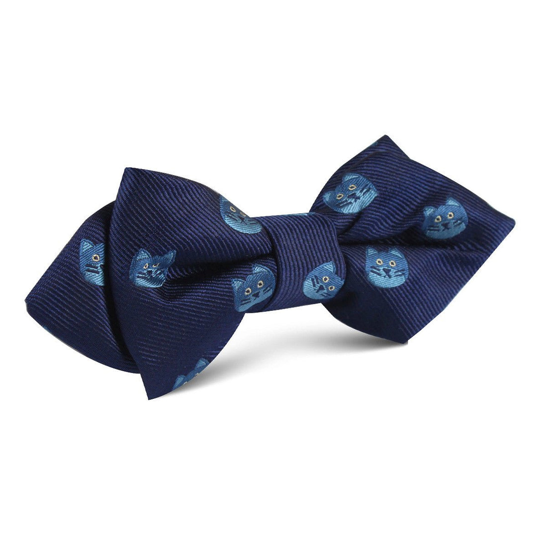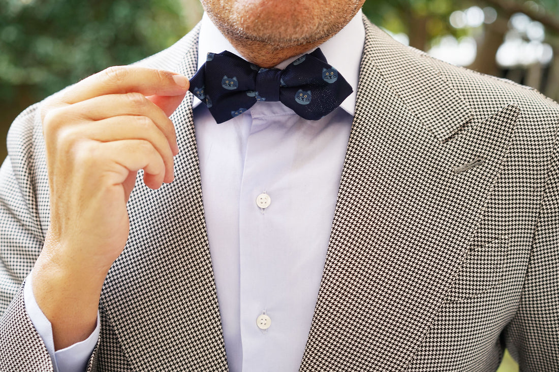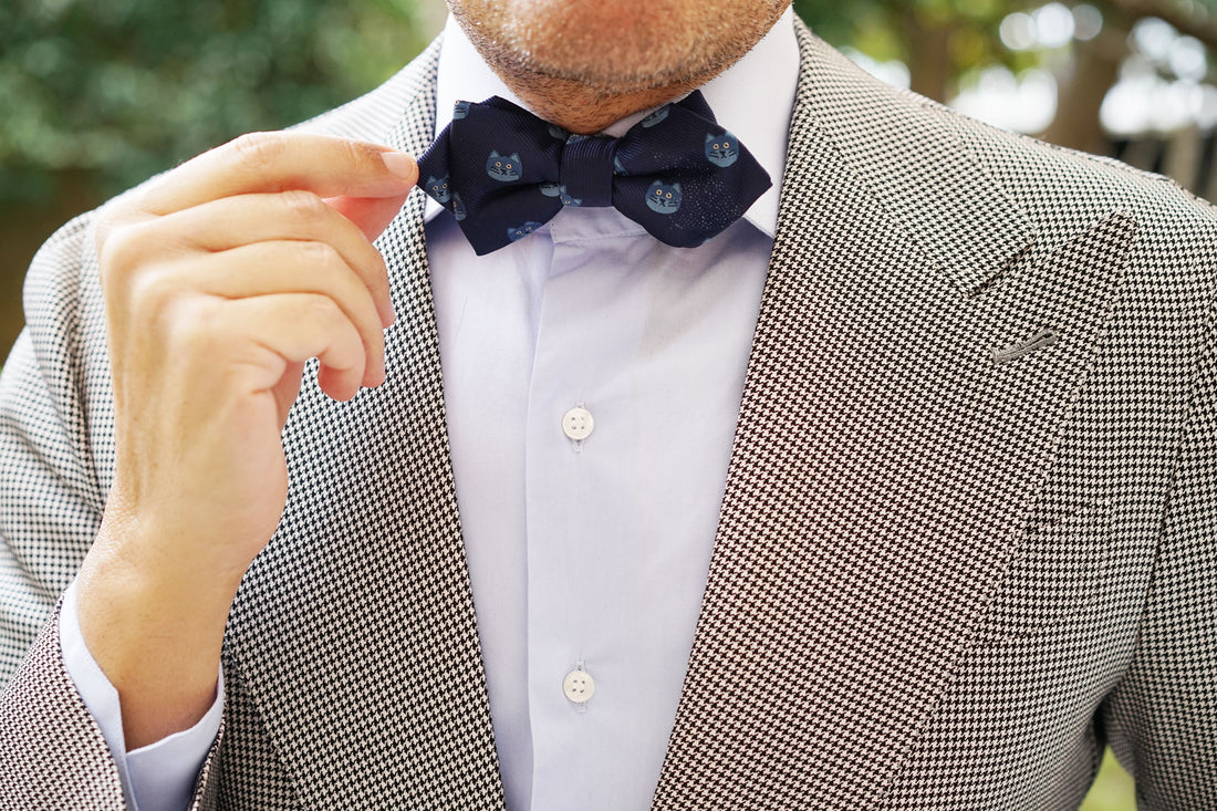 "Grinning like a Cheshire Cat" in old England was the saying. This Cheshire Cat Face Diamond Bow Tie features our neutral blue-faced cat. Crafted by hand and designed in Melbourne, this piece has been cut for a sharp, neat fit and finished with a handsome Prince of Wales navy blue backing to add a stylish point of difference. The Cheshire Cat is now largely identified with the character of the same name in Lewis Carroll's novel, Alice's Adventures in Wonderland. Alice first encounters the Cheshire Cat at the Duchess' house in her kitchen and later on the branches of a tree, where it appears and disappears at will and engages Alice in amusing but sometimes perplexing conversations. Inspired by the Cheshire Cat who went stride to stride from teaching young Alice philosophical life lessons to being the subject of an old English saying, we bring you the Cheshire Cat Face Pre tied Diamond Bowtie. Designed exclusively by The Brothers at OTAA.
