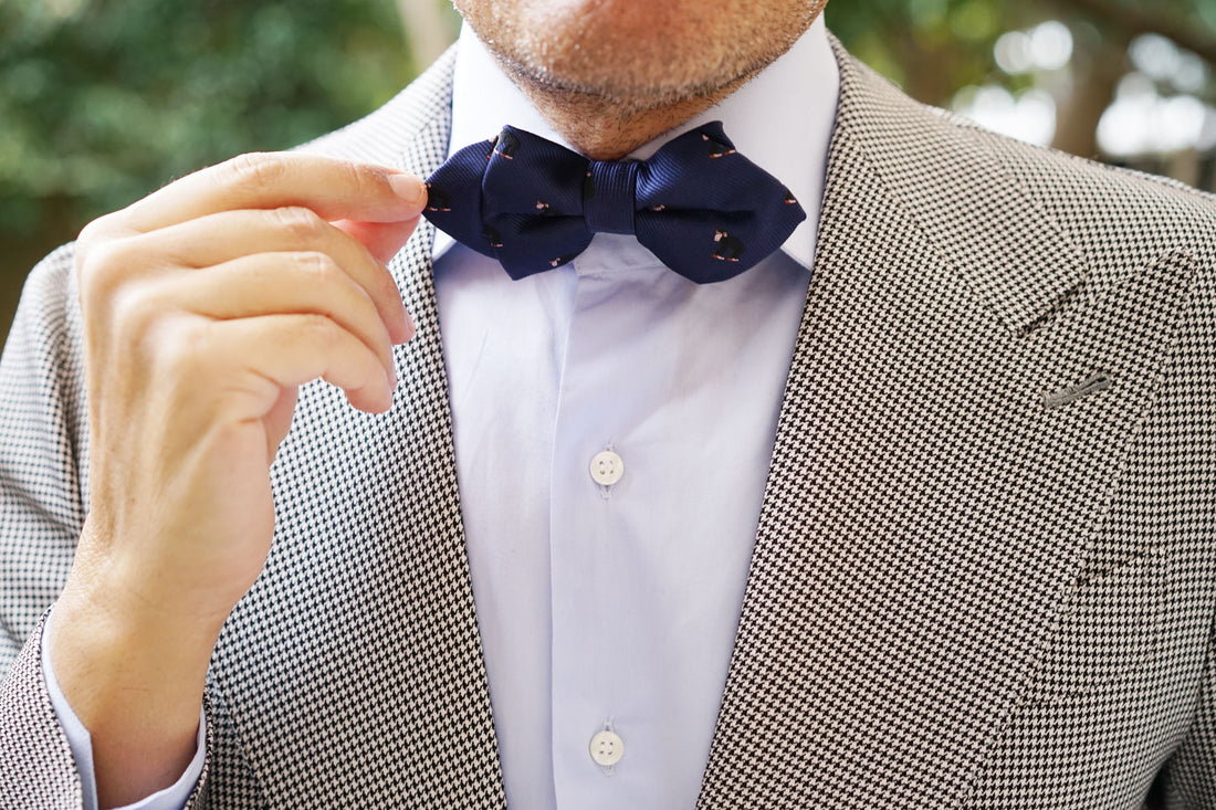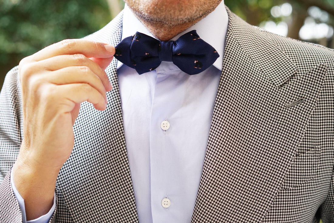 Spun by hand, OTAA's Chimpanzee Monkey Diamond Bow Tie puts a modern spin on the ever-popular monkey motif. Chimps' faces, ears, the palms of their hands and the soles of their feet are bare skin which can vary in colour between pink and black. Chimps possess longer arms than legs and have both opposable thumbs and big toes. All their limbs are very flexible and these features define how a chimp moves around. Inspired by the lovable primate, this Chimpanzee tie injects a cheeky spin on the classic Diamond Bow Tie range.