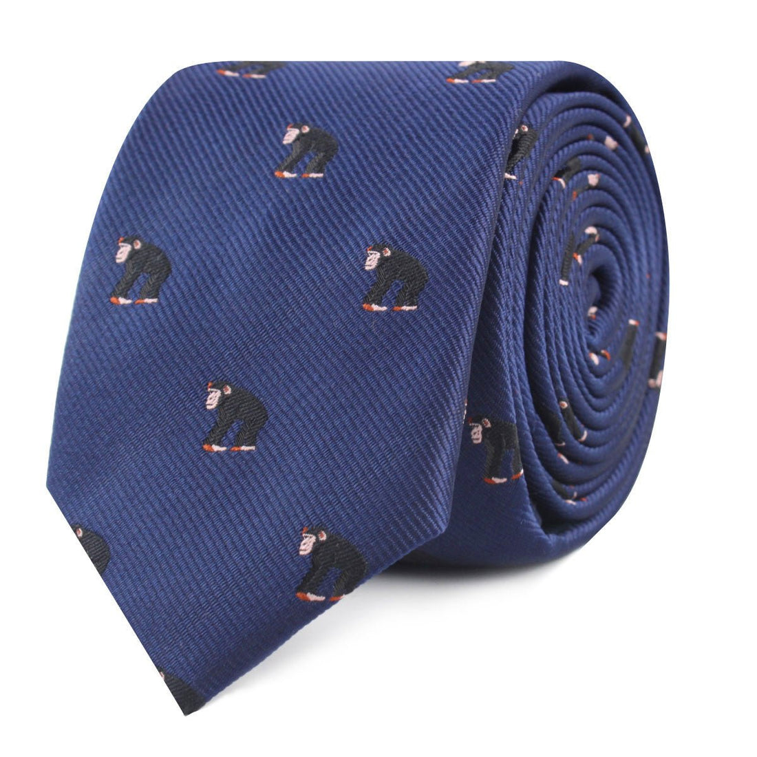 Spun by hand, OTAA's Chimpanzee Monkey Skinny tie puts a modern spin on the ever-popular monkey motif. Chimps' faces, ears, the palms of their hands and the soles of their feet are bare skin which can vary in colour between pink and black. Chimps possess longer arms than legs and have both opposable thumbs and big toes. All their limbs are very flexible and these features define how a chimp moves around. Inspired by the lovable primate, this Chimpanzee tie injects a cheeky spin on the classic Skinny tie range.