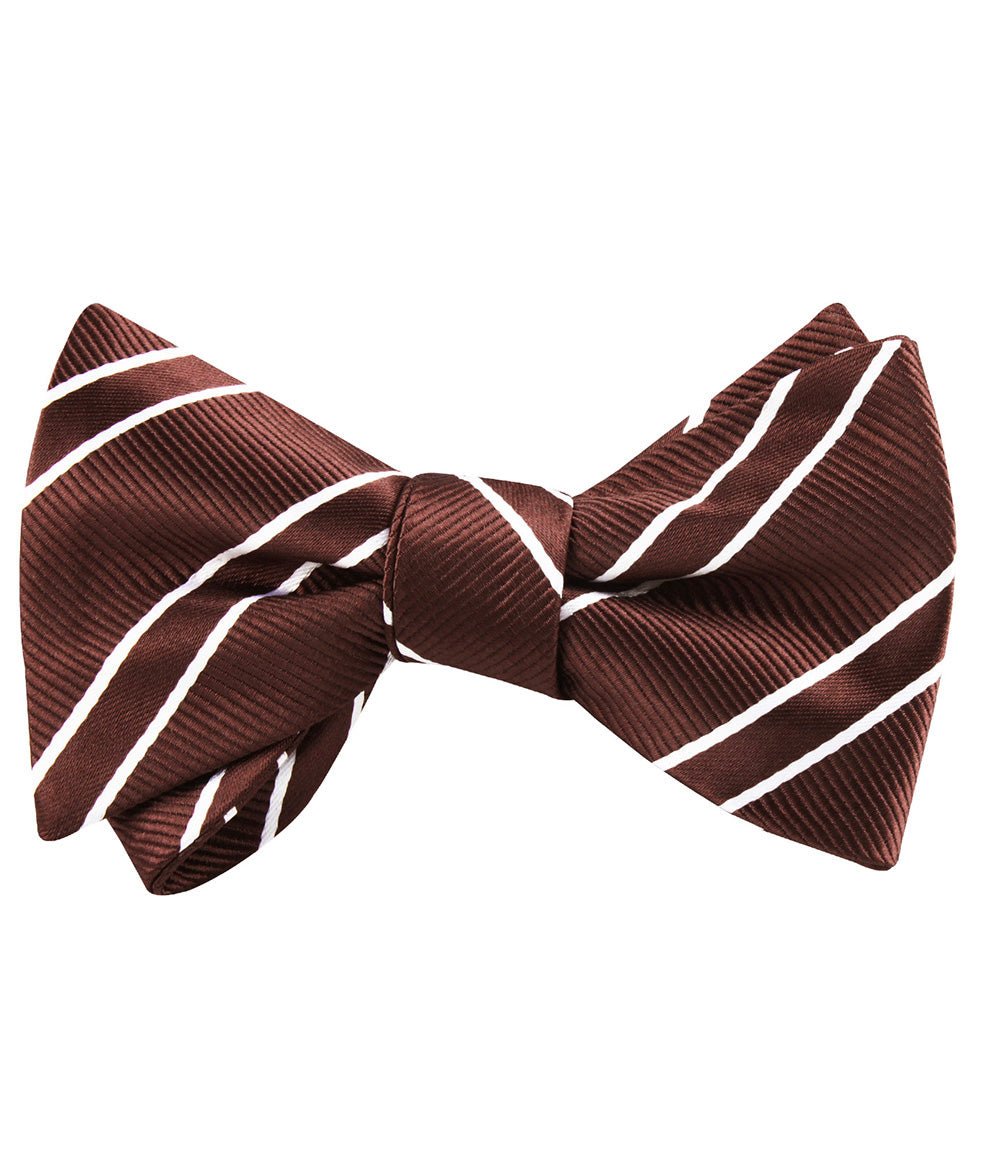 The Chocolate Brown Double Stripe Self Tie Bow Tie will make for a delicious feast for the eyes with its sumptuous hazelnut tones and carefully crafted cut, fresh out of the oven at the Brothers’ Untied Bow Tie factory. The connoisseur’s choice, this marvellous design will have onlookers doing a double-take and thanks to a jaunt the Brothers took to a fabled confectioners emporium, where they were able to track down the definitively perfect shade of brown, this stellar piece has been released to the world at large.