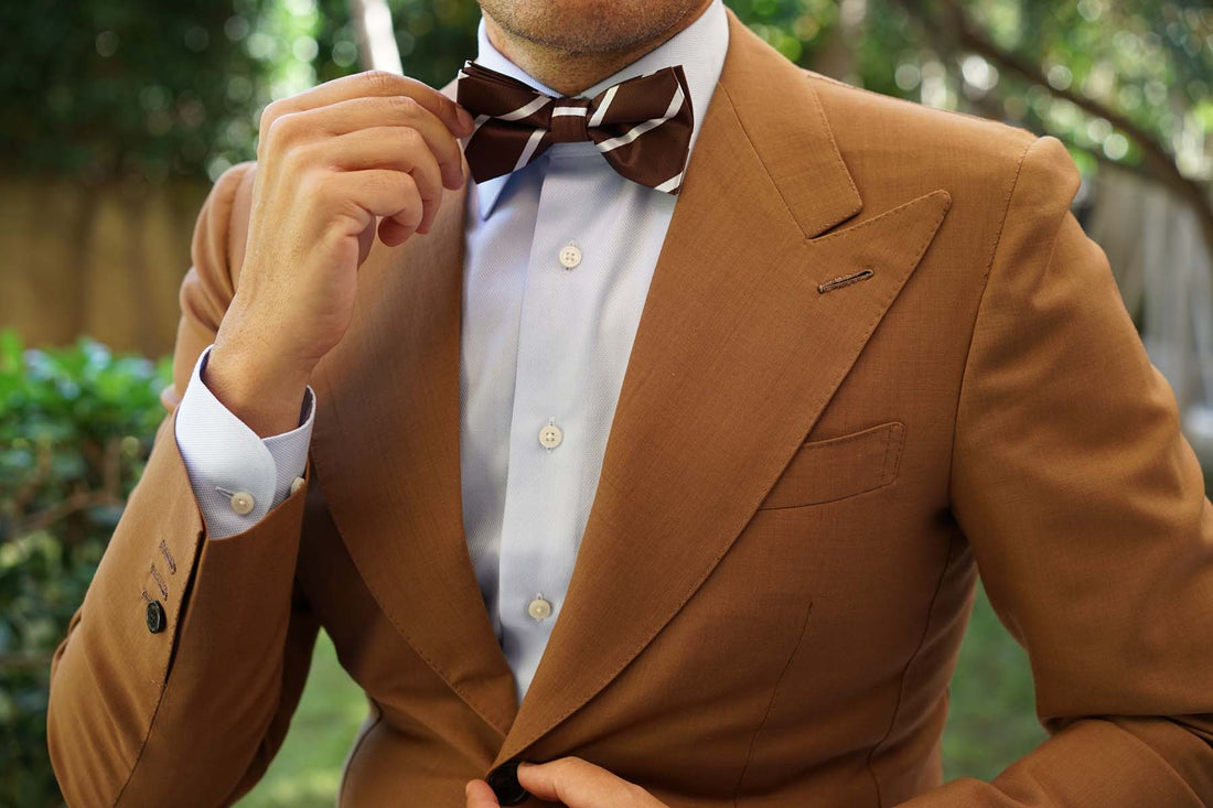 Add luxury to your looks with OTAA’s Chocolate Brown Striped Bow Tie. The Brothers at OTAA prize world-class tailoring; which is why this pre-tied bowtie is constructed from a fine satin fabric and finessed with exquisite textures. The elegant satin material is embellished with horizontal lined textures for a stylish point of difference. The decadent chocolate tones will give your suits a vintage appeal; showcasing the label’s heritage. Wear this Chocolate Brown Striped Bow Tie to add a sophisticated statement to formal looks; alternately add it to your work-week roster for an accomplished arrangement. Designed exclusively by the Brothers at OTAA.