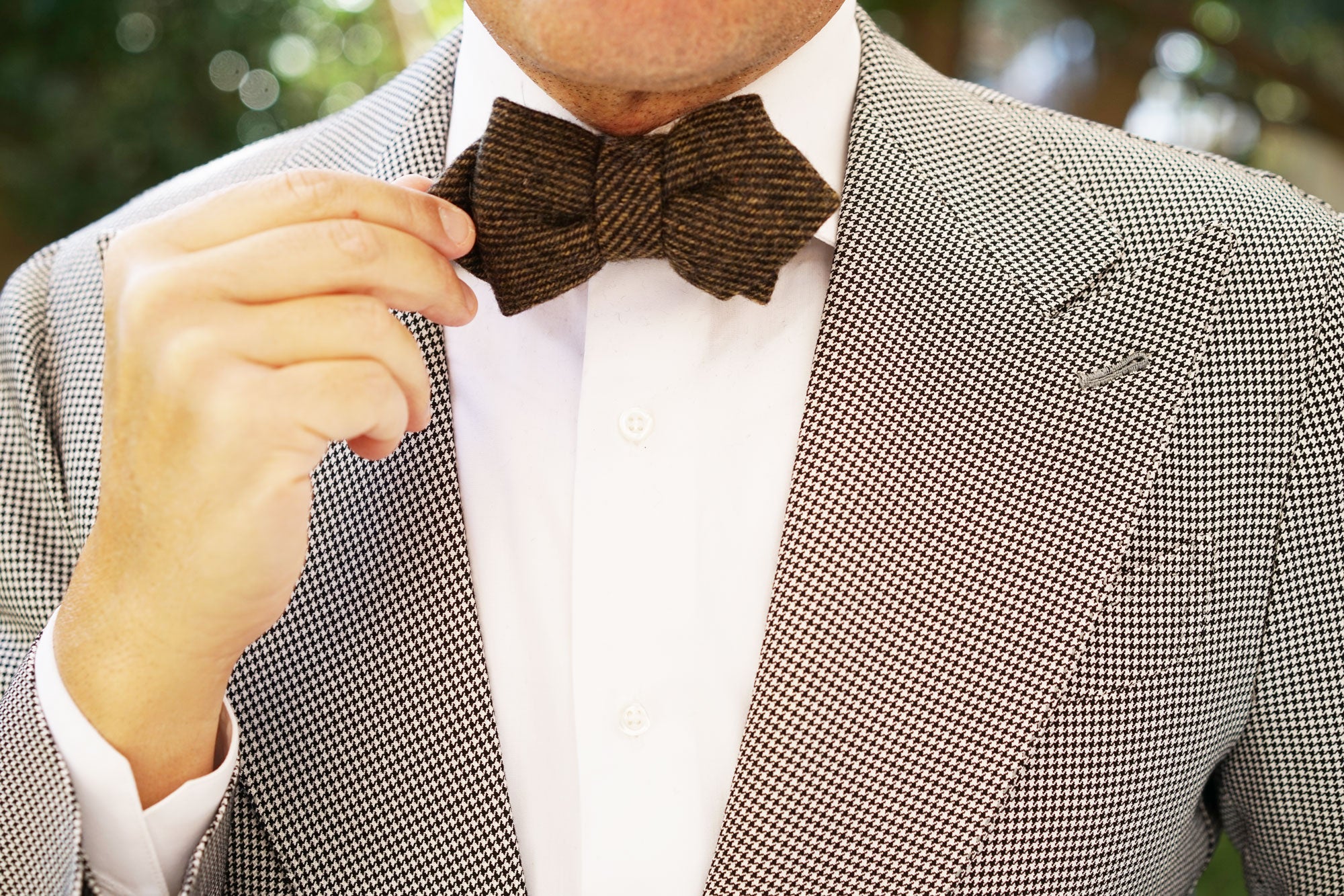 Chocolate Brown Striped Wool Fabric Mens Diamond Bowtie