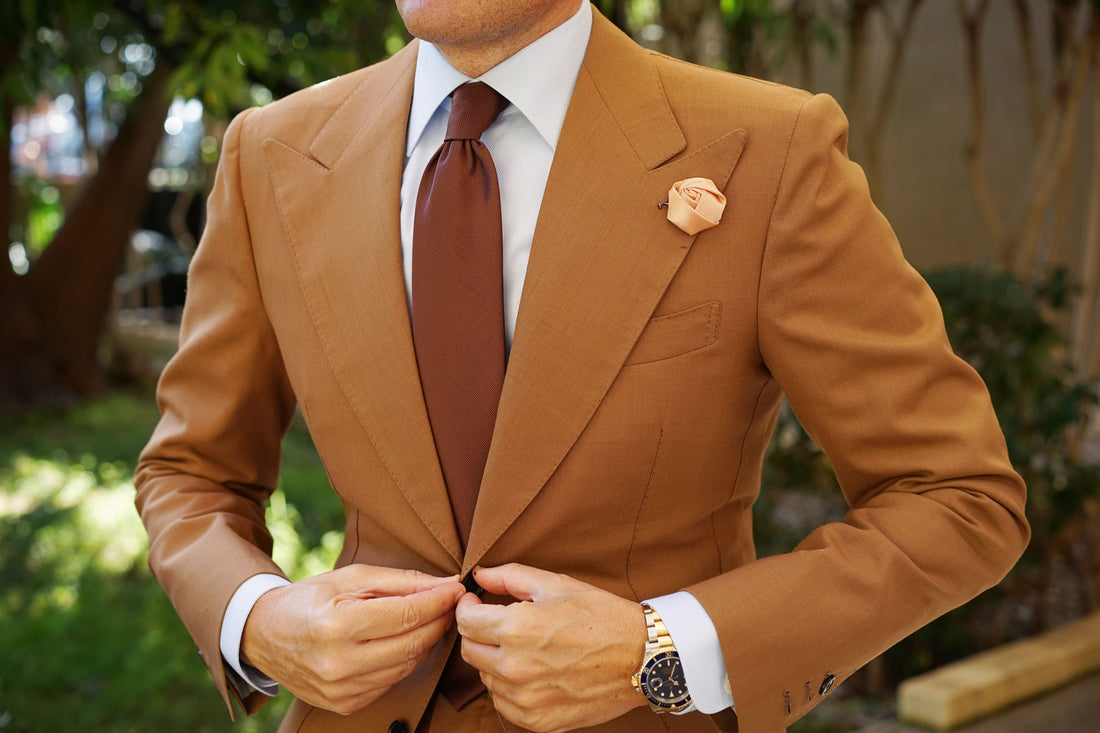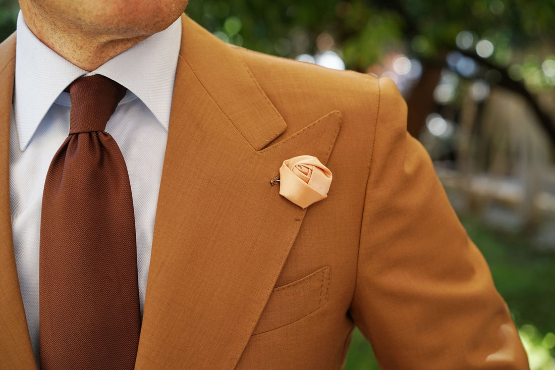Understated in tone and exquisite in texture, OTAA's Cinnamon Lapel Flower is a tantalising addition to the assemblage. Boasting luxurious folds of exquisite brown satin, this lapel is a sure way to spice up your ensemble with flair. This lapel delivers an elegant rose design atop a hand-chiselled silver rhodium pin that promises uncompromed quality and design. A subdued but elegant feature to a classic ensemble, this Cinnamon Satin Rose Lapel Pin is a perfect accessory to men of refinement.