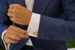 Includes a small cylinder at the back that rotates 90 degrees to hold the cufflink in place