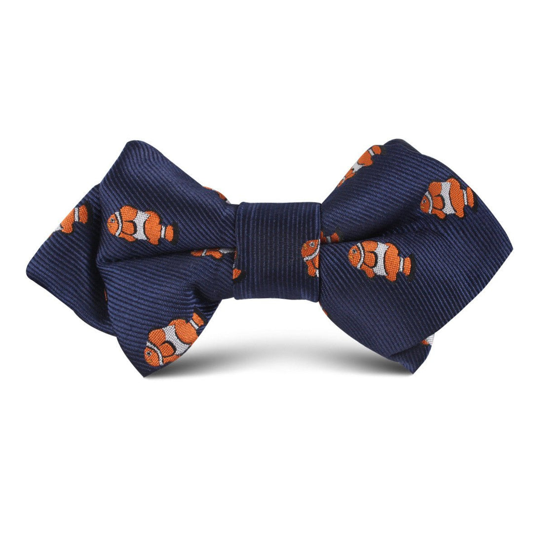 Inspired by the colourful fish, this Clownfish Kids Diamond Bow Tie exudes fun and sophistication and is hand cut and sewn on a classic navy backing. Designed exclusively by The Brothers at OTAA.