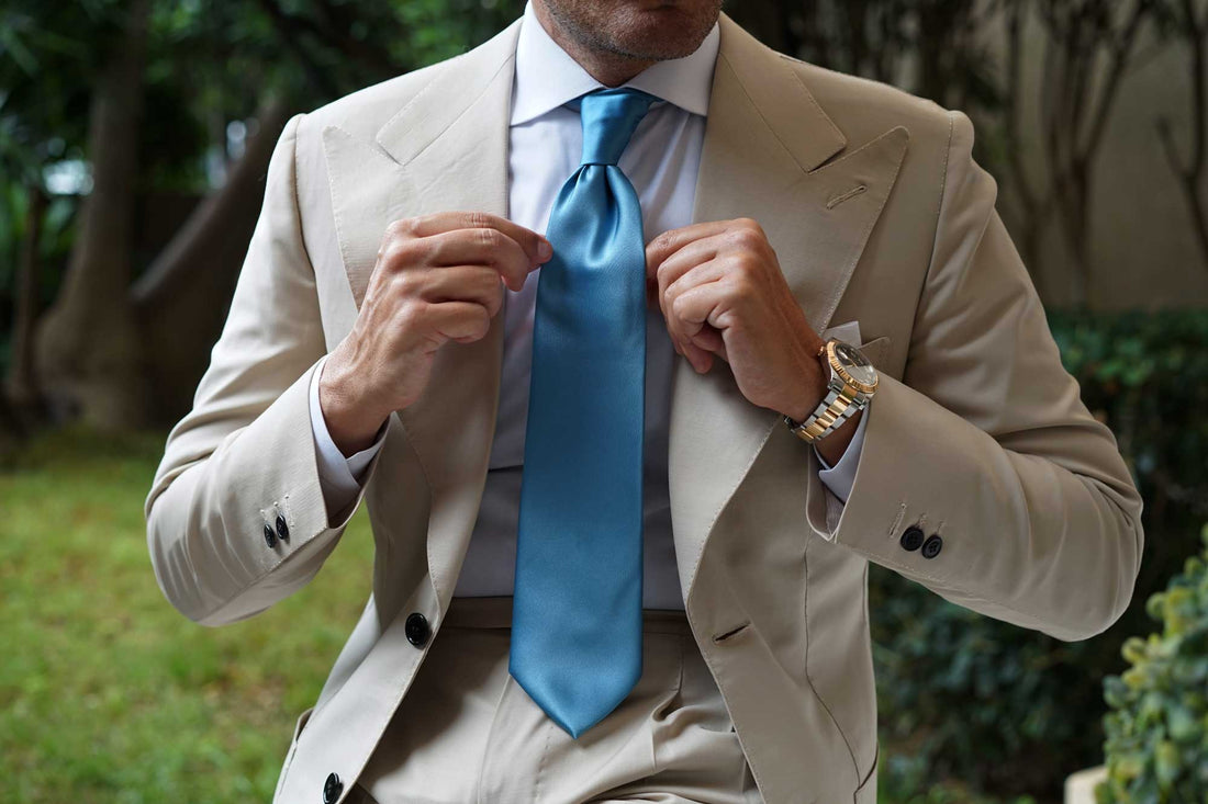 The hand-woven, elaborately stitched satin shimmers with a subtle Blue sheen, lending an extra sense of dimension to the body. The high-quality fabric is finely textured and smooth overall. The Coastal Blue Satin Tie is tailored exclusively by The Brothers at OTAA.