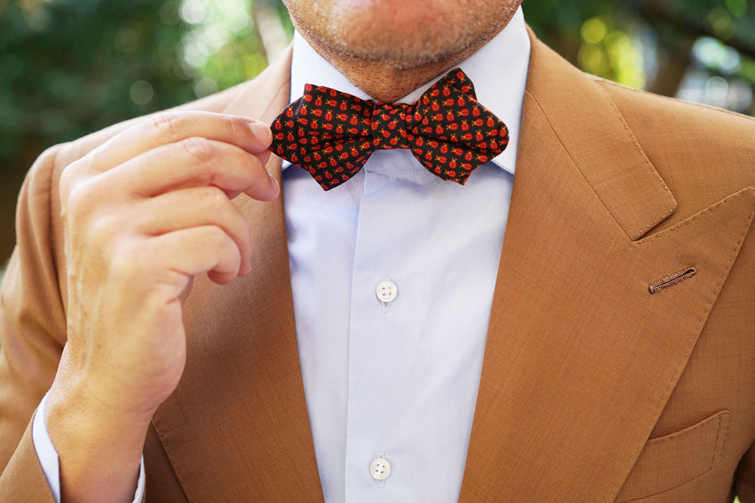 This Coquelicot Red Beetle Diamond Bow Tie is a knock-out. Crafted by hand and designed in Melbourne, it has been cut for a sharp, neat fit and finished with a handsome dark backing to add a stylish point of difference. Beetles are one of the world’s oldest animals – they have been here for over 300,000 years. Inspired by the beetle who has been around longer than the invention of an actual Diamond Bow Tie, we bring you the Coquelicot Red Beetle Pre tied Diamond Bowtie. Designed exclusively by The Brothers at OTAA.